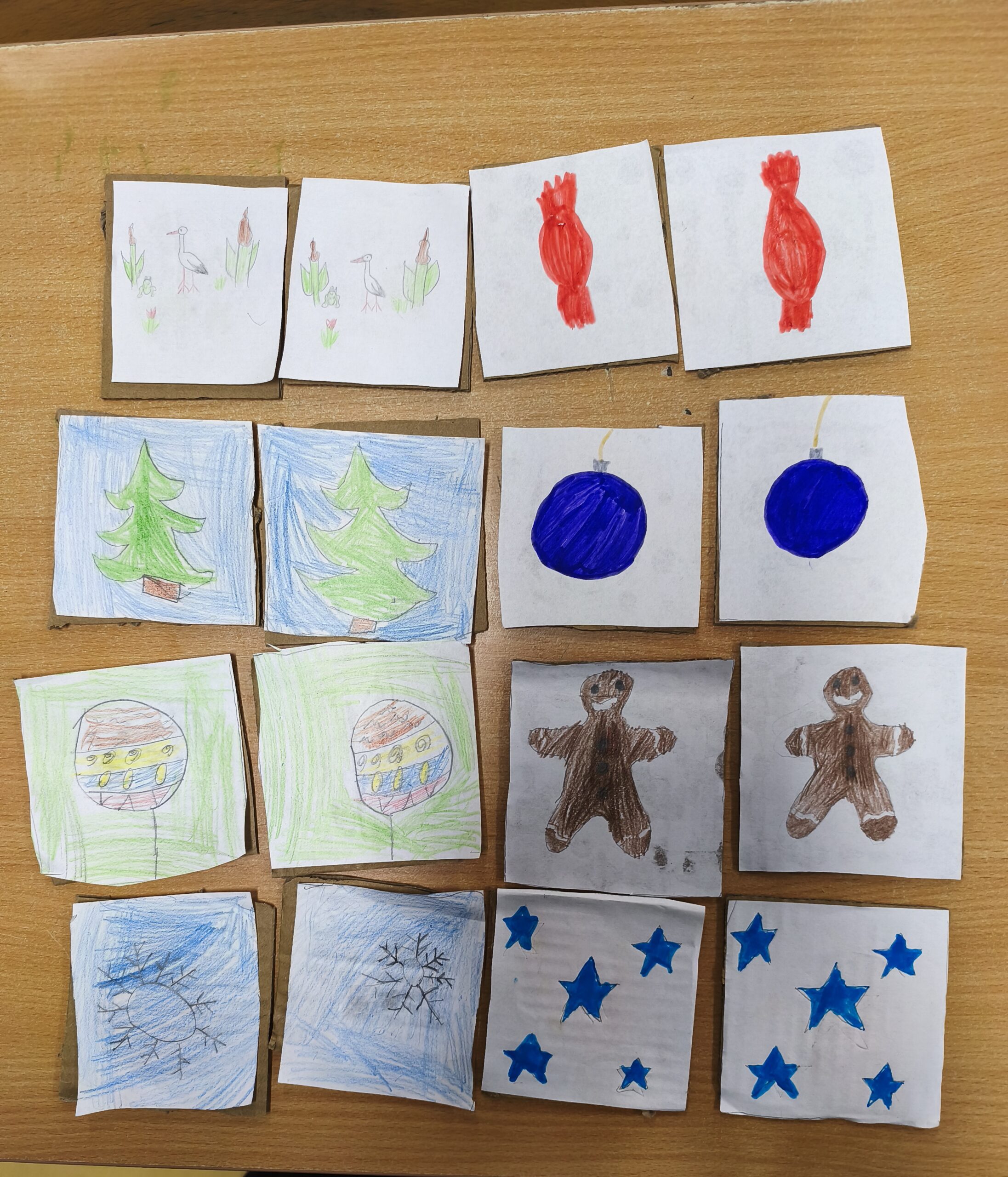 Ezt követően egy gyors memóriajátékot készítettek a gyerekek, karácsonyi motívumokkal. Ezt ki is próbálták.