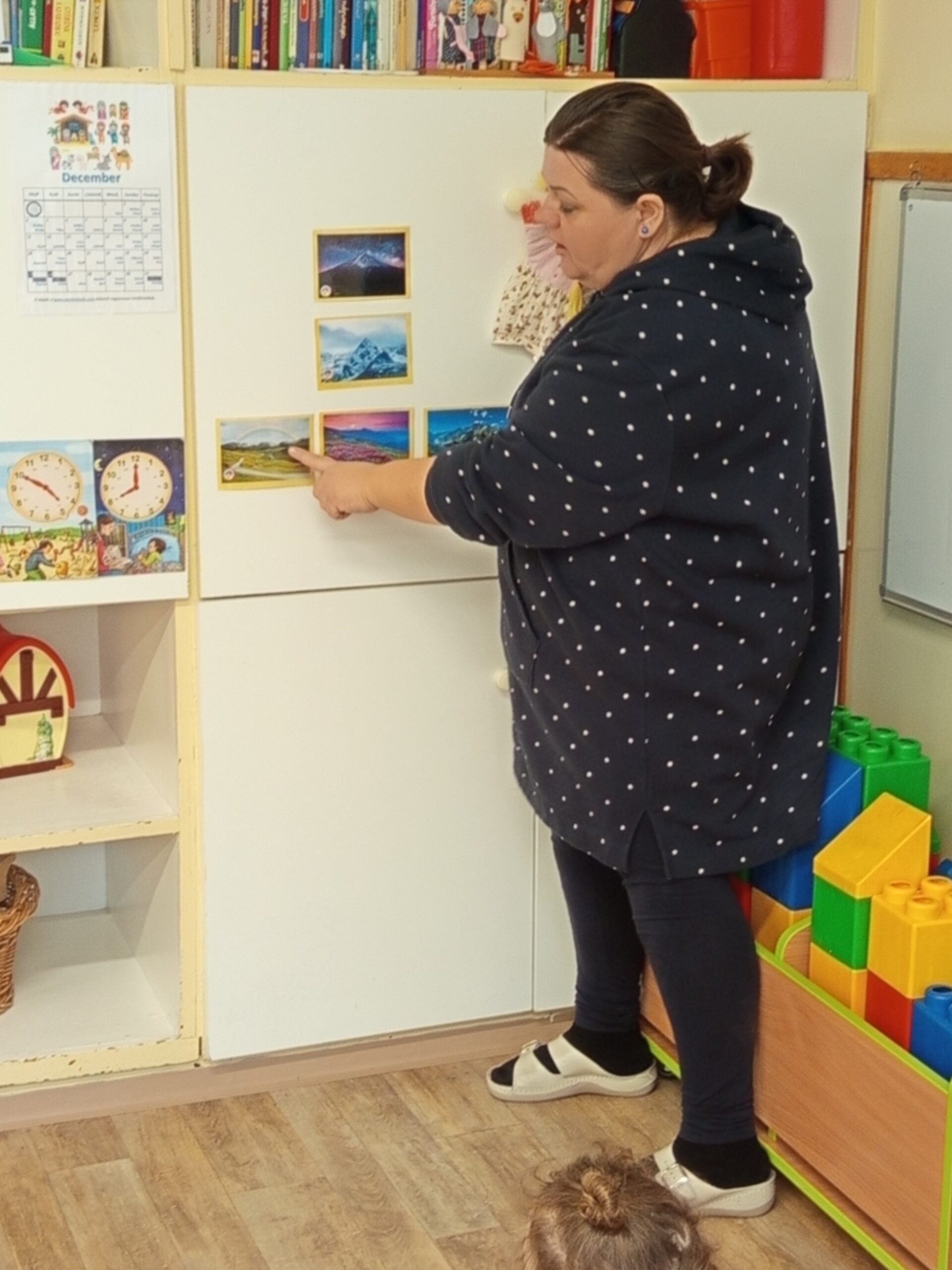 Beszélgetőkörrel folytattuk a Boldogságórát. Elmondtam a gyerekeknek, hogy egy nagyon fontos témát fogunk ma megbeszélni, mégpedig: Reális célok kitűzése és elérése. Középső csoportommal beszélgettünk a célokról, és arról, hogy mit jelent kitartani egy cél mellett, még akkor is, ha valami nem sikerül elsőre. Hegyes képeket választottam számukra példaként, majd kis kártyákon keresztül beszéltük meg azt, hogy mely dolgok jöhetnek szóba egy célnál. Megosztották saját tapasztalatikat is. (pl. valaki megtanult biciklizni)