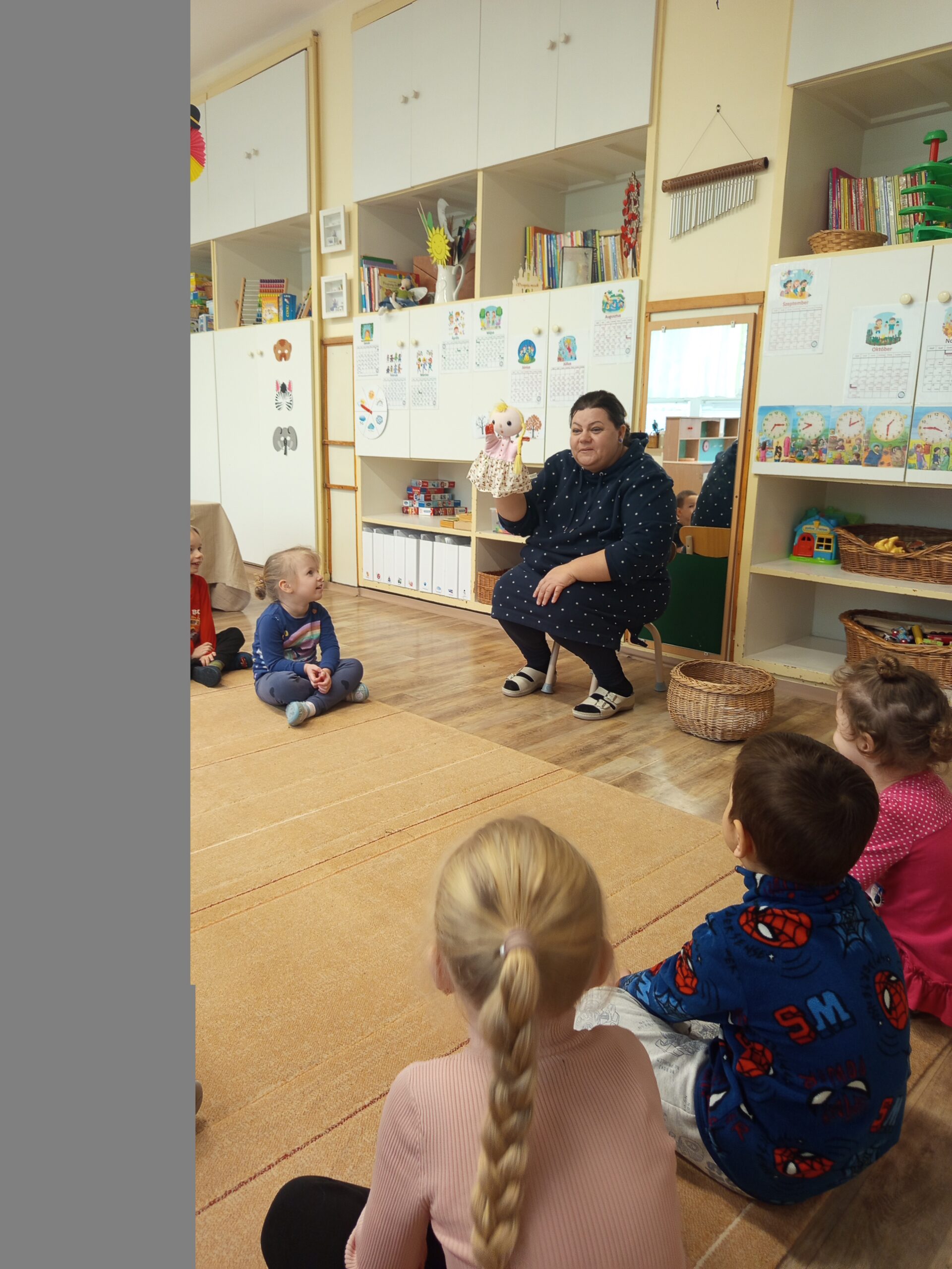 Boldogságórás foglalkozásunkat egy mondókával kezdtük, ezzel vártuk, hogy Boldog Dóra megérkezzen.