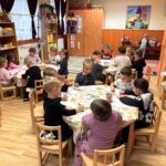 A Boldogságóra program keretében a gyermekekkel „Az apró öröm az életben” című témát dolgoztuk fel. A foglalkozás során szabad asszociáció alapján rajzoltak, miután közösen beszélgettünk arról, mi minden okozhat örömet a mindennapokban. A gyerekek rajzai leggyakrabban az őszi szünetben átélt élményeiket jelenítették meg – családi kirándulásokat, közös játékokat és vidám pillanatokat. A tevékenység segítette őket abban, hogy tudatosítsák és megosszák egymással az élet apró örömeit.