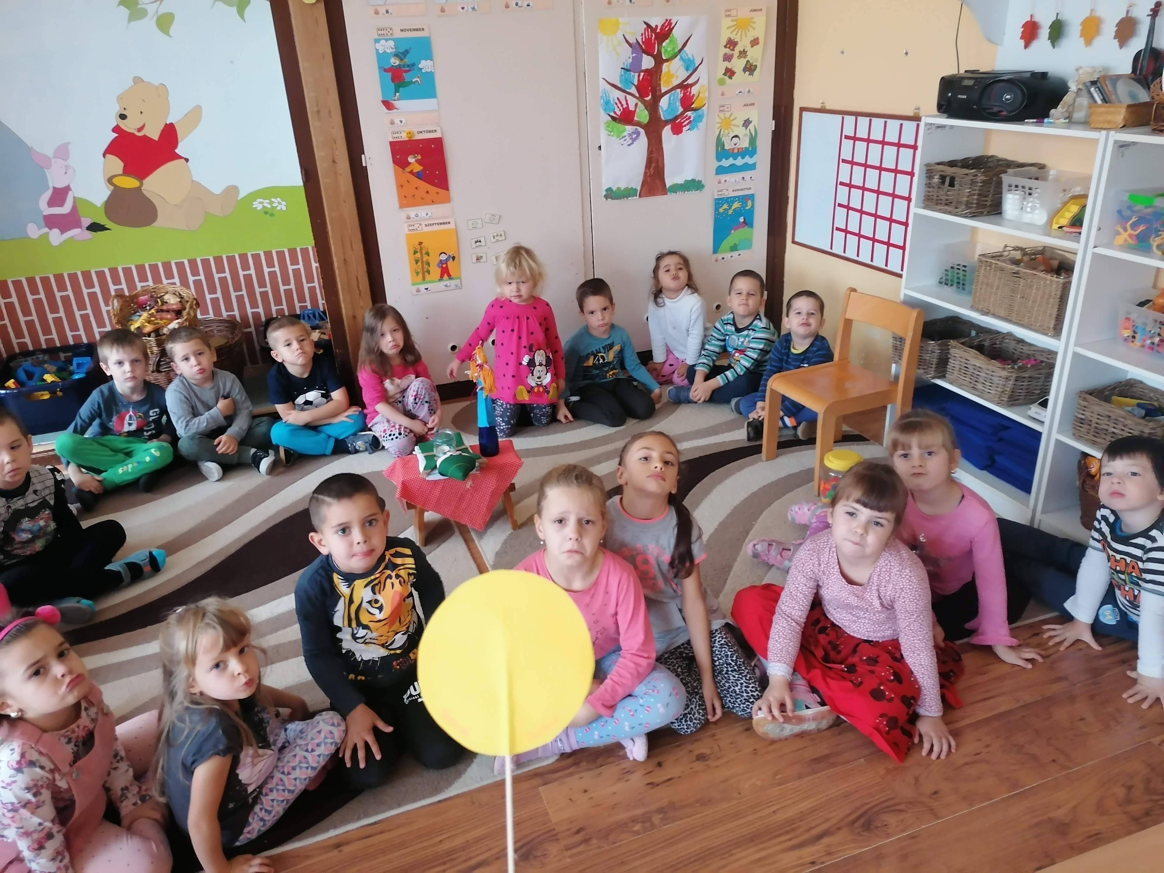A foglalkozást relaxációval indítottuk. A „Napimádás” -ra, illetve a „Kitárom világom, mint egy virág kinyílok”- ra esett a választás. Ezután meghallgattuk „Pozitív gyerek vagyok” című dalt. Kitaláltam rá mozdulatokat, s egyből utánoztak is. Ez olyannyira tetszett a gyerekeknek, hogy újrakérték a dal meghallgatását.