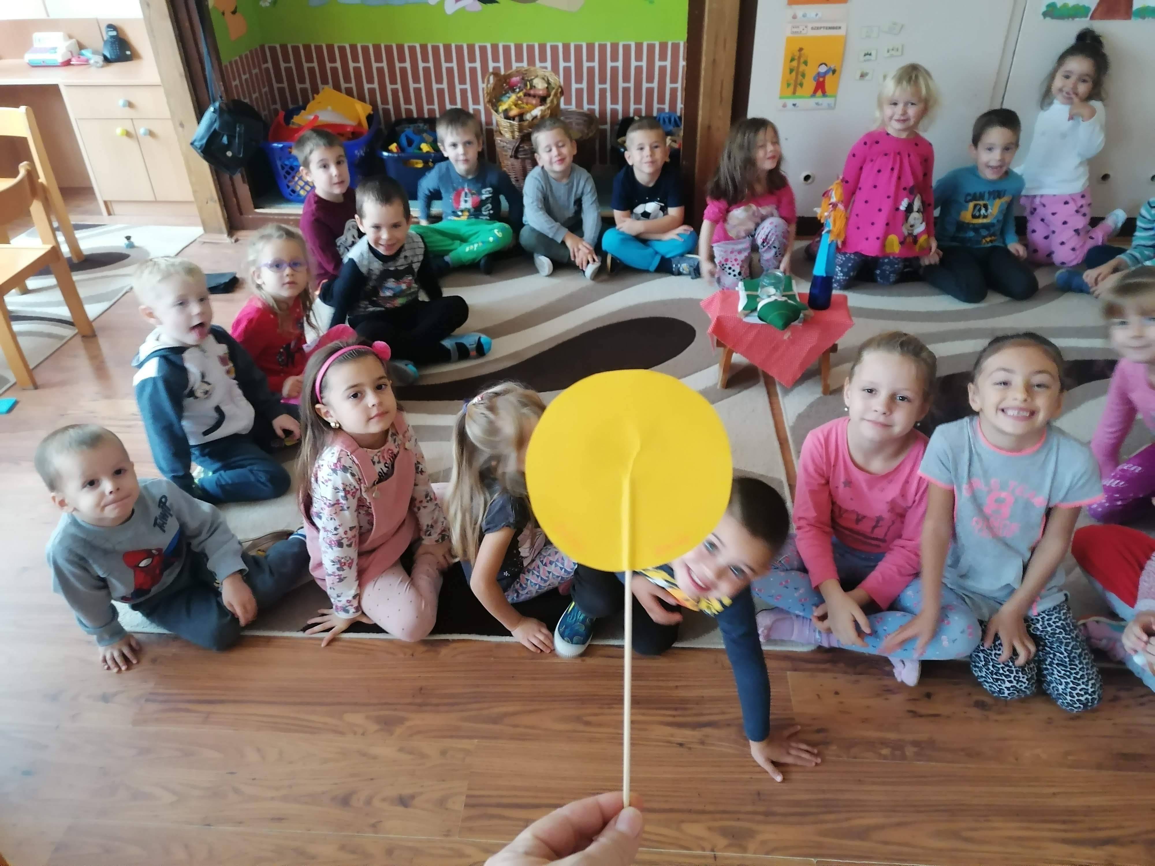 A zene után játszottunk, mégpedig Szomorú Szilárddal és Boldog Blankával. Először megkértem a gyerekeket, hogy utánozzák azt a bábot, amelyet épp felmutatok. Megbeszéltük, hogy mikor éreztük magunkat jobban. Akkor, amikor mosolyogtunk, vagy netán, amikor szomorú arcot vágtunk? Ezután két táborra osztódtunk: szomorúak és vidámak táborára. A szomorúakat fel kellet vidítani a vidámaknak. Nagy nevetés tört ki a végén a gyerekek körében.