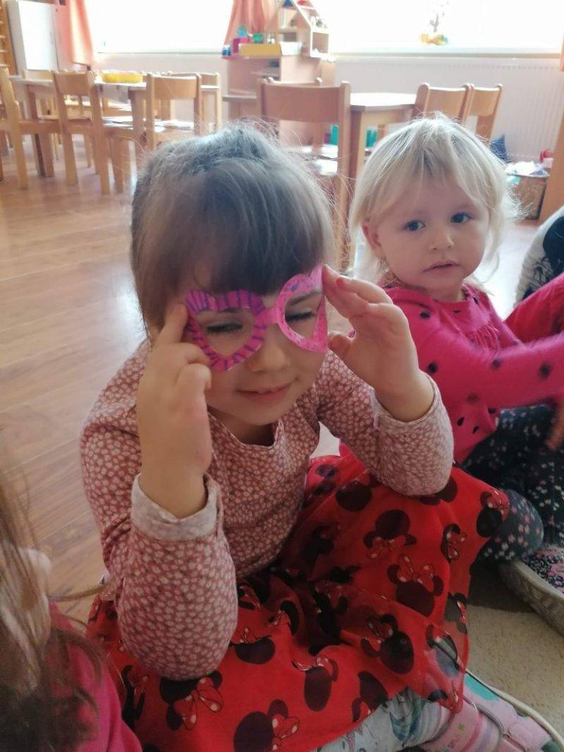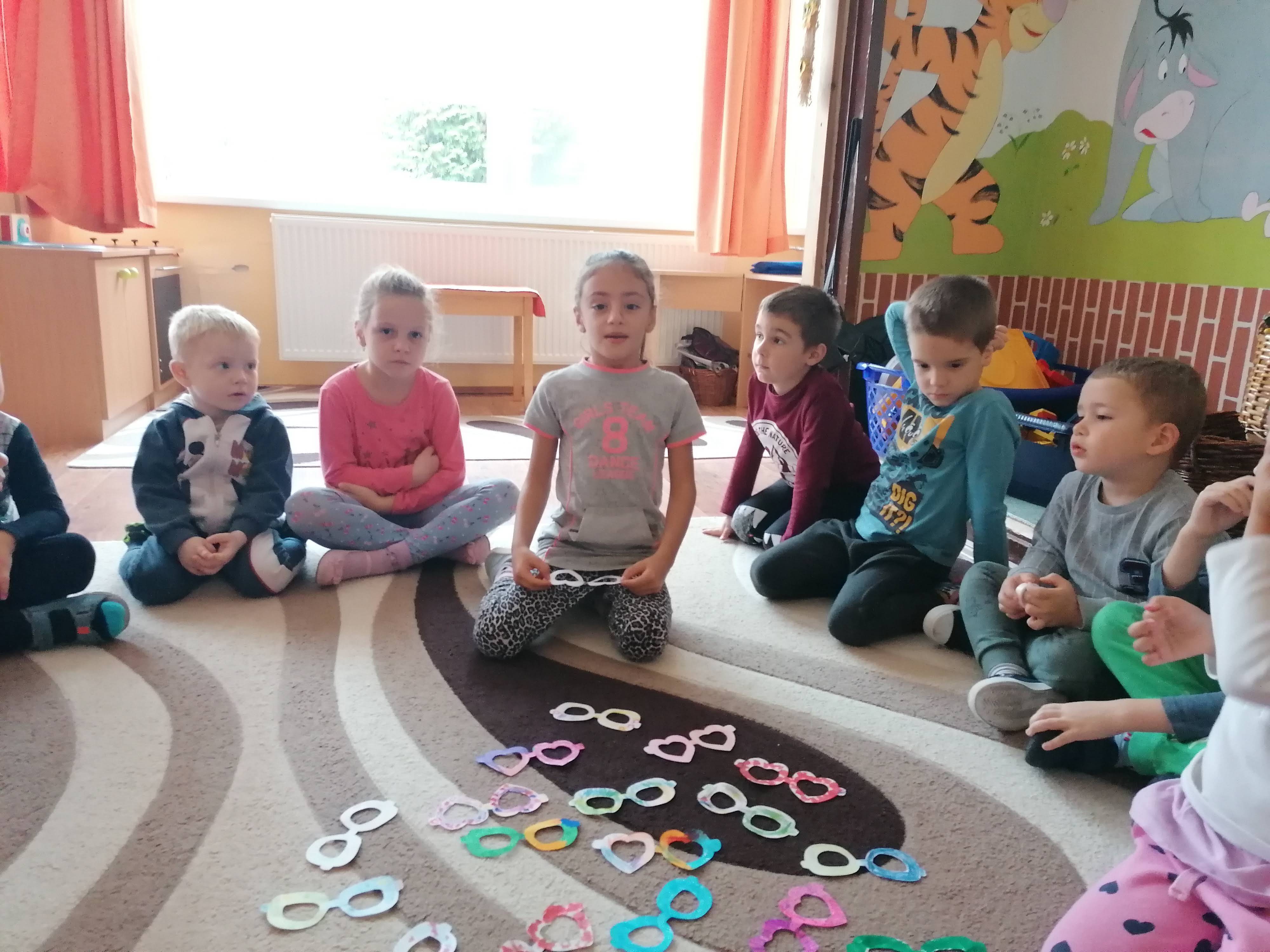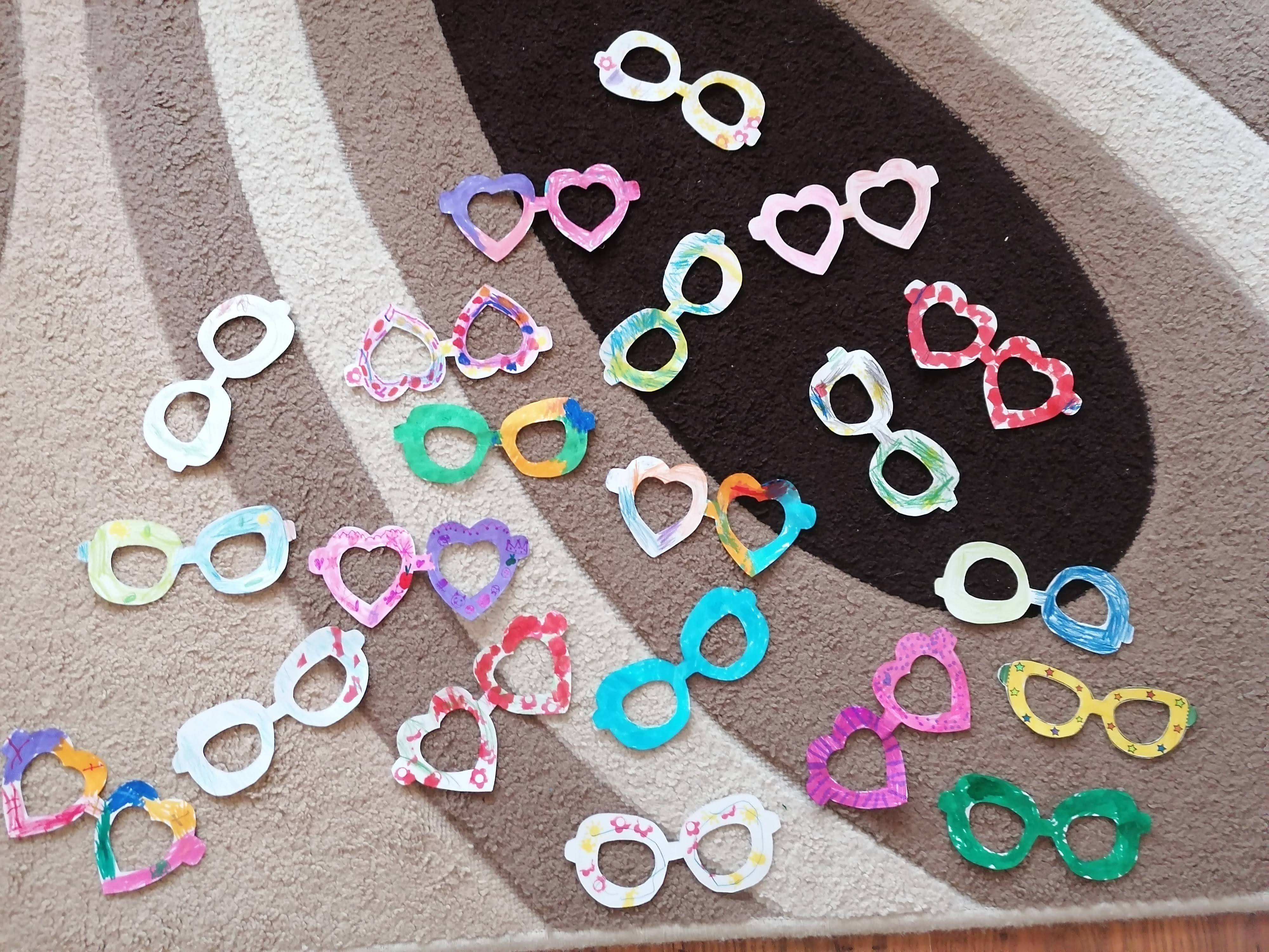 A mese indíttatására mi is készítettünk varázsszemüvegeket. Amikor elkészültünk , akkor elmesélhettek a gyerekek egy-egy rossz dolgot, ami velük történt, majd felvették a szemüveget, hogy mindent szebben lássanak és megpróbáltuk azt a rossz dolgot jóra fordítani. Esetleg, ha már jóra fordult, azt is megbeszéltük, hogy hogyan történt, és milyen örömet okozott ez nekik.