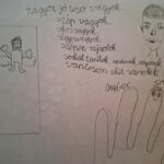 Ehhez a gyerekek kezébe tükröt adtam, melyben magukat a „kedves” szemükkel kellett megfigyelniük. Feladatuk az volt, hogy külső és belső szépségeket fedezzenek fel magukban, az eredményt pedig lerajzolták, vagy kedves üzeneteket írtak maguknak. Fontosnak tartom, hogy a gyerekek elégedettek legyenek magukkal, szeressék magukat. Nem mindenkinek ment egyszerűen a feladat – később megfogalmazták az önbizalom mibenlétét. Sokkal könnyebben fogalmaztak meg egymásnak titkos üzeneteket, melyekben egymást dicsérték.