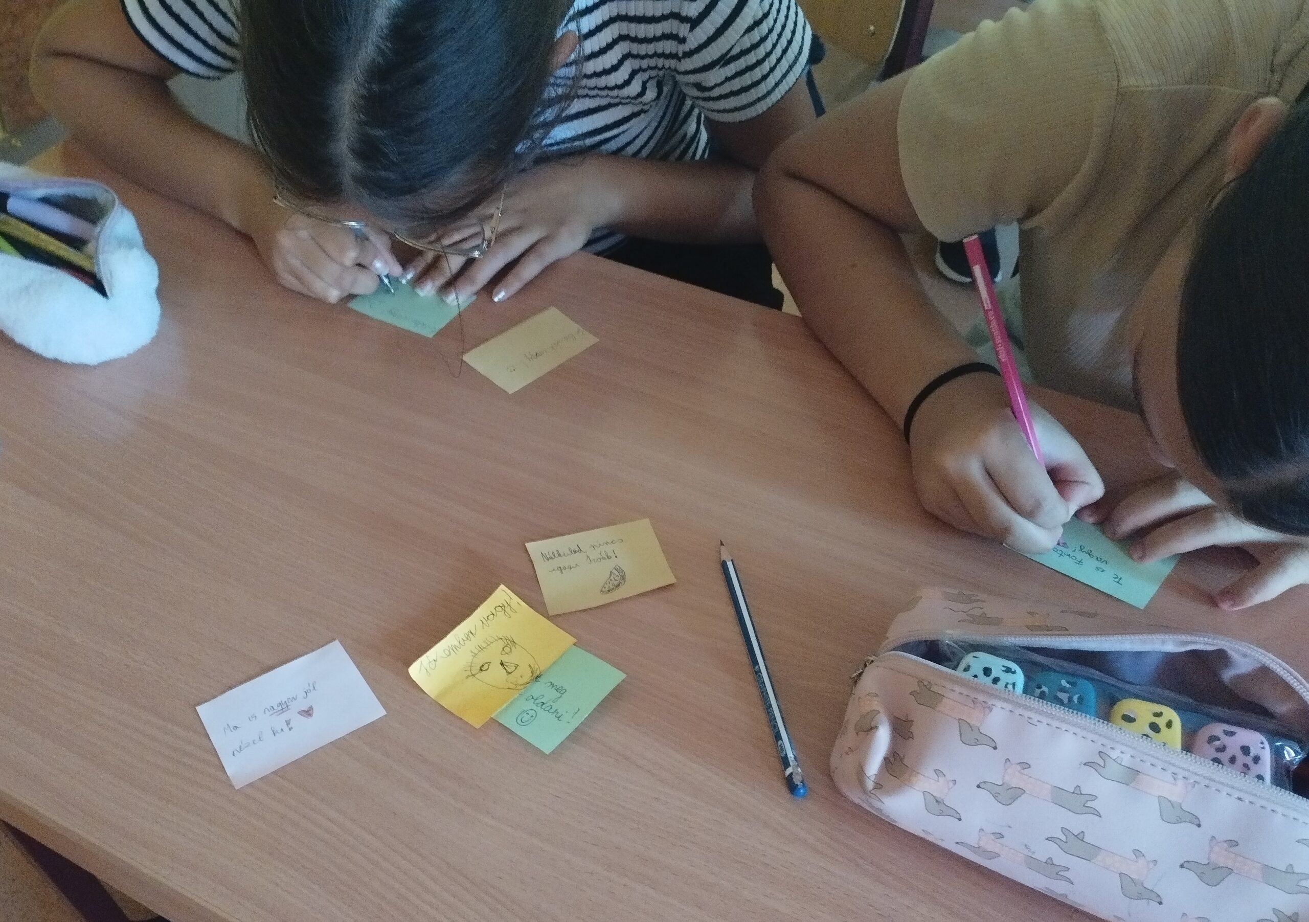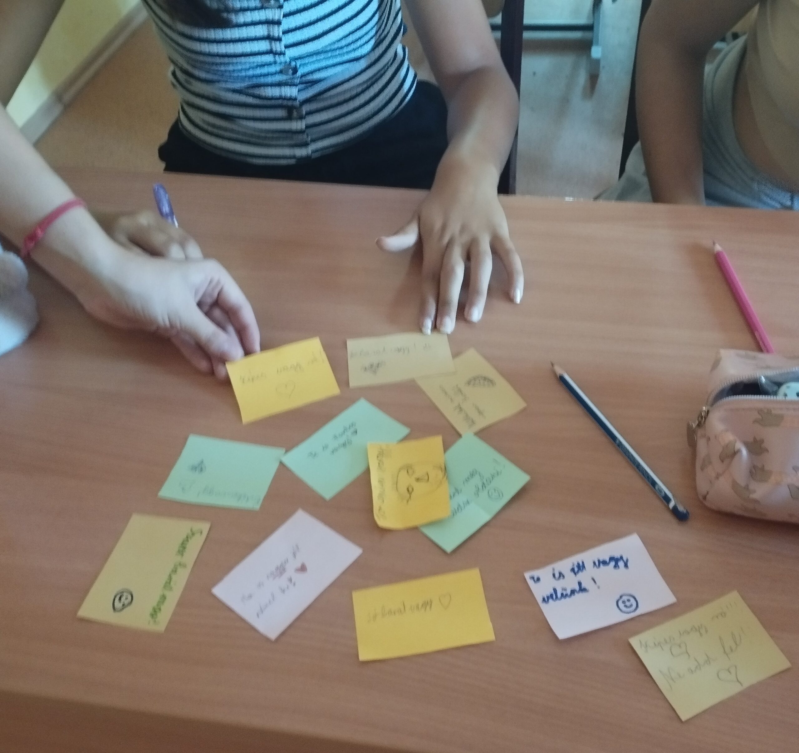 III. Pozitív üzenetek iskolatársainknak: Kis színes cetlikre bátorító üzeneteket írtak a gyerekek, amelyeket csengetés előtt elrejtettek az iskola különböző pontjain (mosdók, ajtók, pingpongasztal, korlátok…), hogy örömet szerezzenek annak, aki megtalálja.