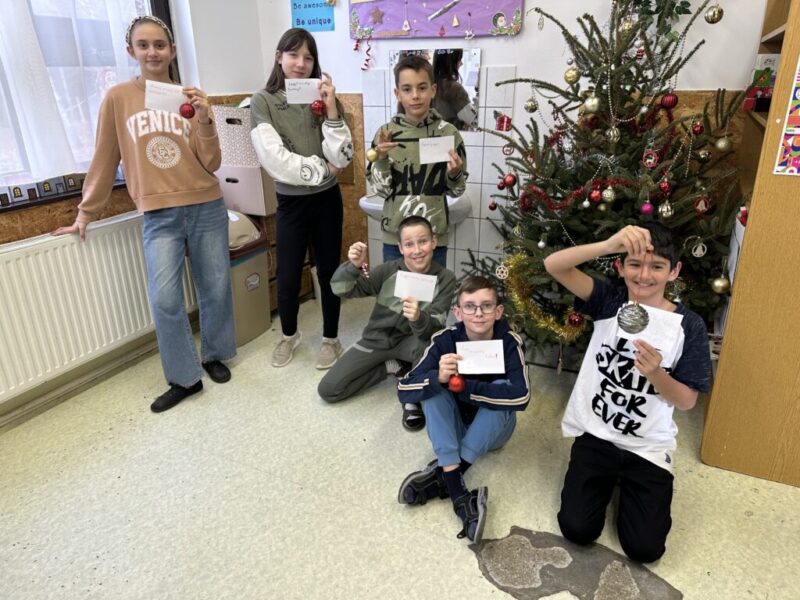 Karácsonyfánkat a hatodik osztályban névre szóló pozitívüzenet-kártyák is díszítik.