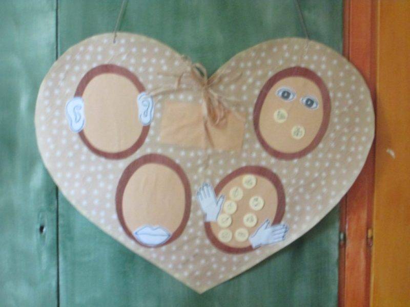 Az érzékszervek gyakorlásakor jött az ötlet, hogy összekapcsolhatjuk a hála feldolgozásával. Elkészítettük a „hálás a szívem” táblát, amelyre azokat a szimbólumokat ( szem, száj, fül, kéz)rajzoltuk amelyekkel olyan jelzéseket, adhatunk ami a hála érzését eredményezi, érezteti.