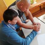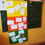 A Napraforgó csoportban jelenleg hat tanuló van, mindegyikük súlyosan-halmozottan sérült. A csoportban három beszélő tanuló van, a többiek sajátos spontán kialakult gesztus nyelvet használnak, illetve egy tanulóm sajátos szavakat használ gesztusokkal vegyítve. A hónap boldogságórájának témája a hála. A gyerekekkel saját életemből hozott példákon keresztül igyekeztem megértetni, hogy mit jelent a hála, én miért lehetek hálás, kinek lehetek ezekért hálás. A tanulókkal kötetlen beszélgetés formájában gyűjtöttük össze, hogy ők miért hálásak és kinek. Mi plakátot készítettünk, hogy miért lehetünk hálásak reggel, délben este, a plakátot függőlegesen három színre osztva készítettük, ezek jelképezik a három napszakot. Egyszerű formában ábrázoltunk, a tanulók választották ki, hogy melyik napszakhoz mit rajzolnak. A rajzolásban, színezésben a jelenlévő tanulók mind segítséget igényeltek. A foglalkozás jó hangulatban, családias légkörben telt.