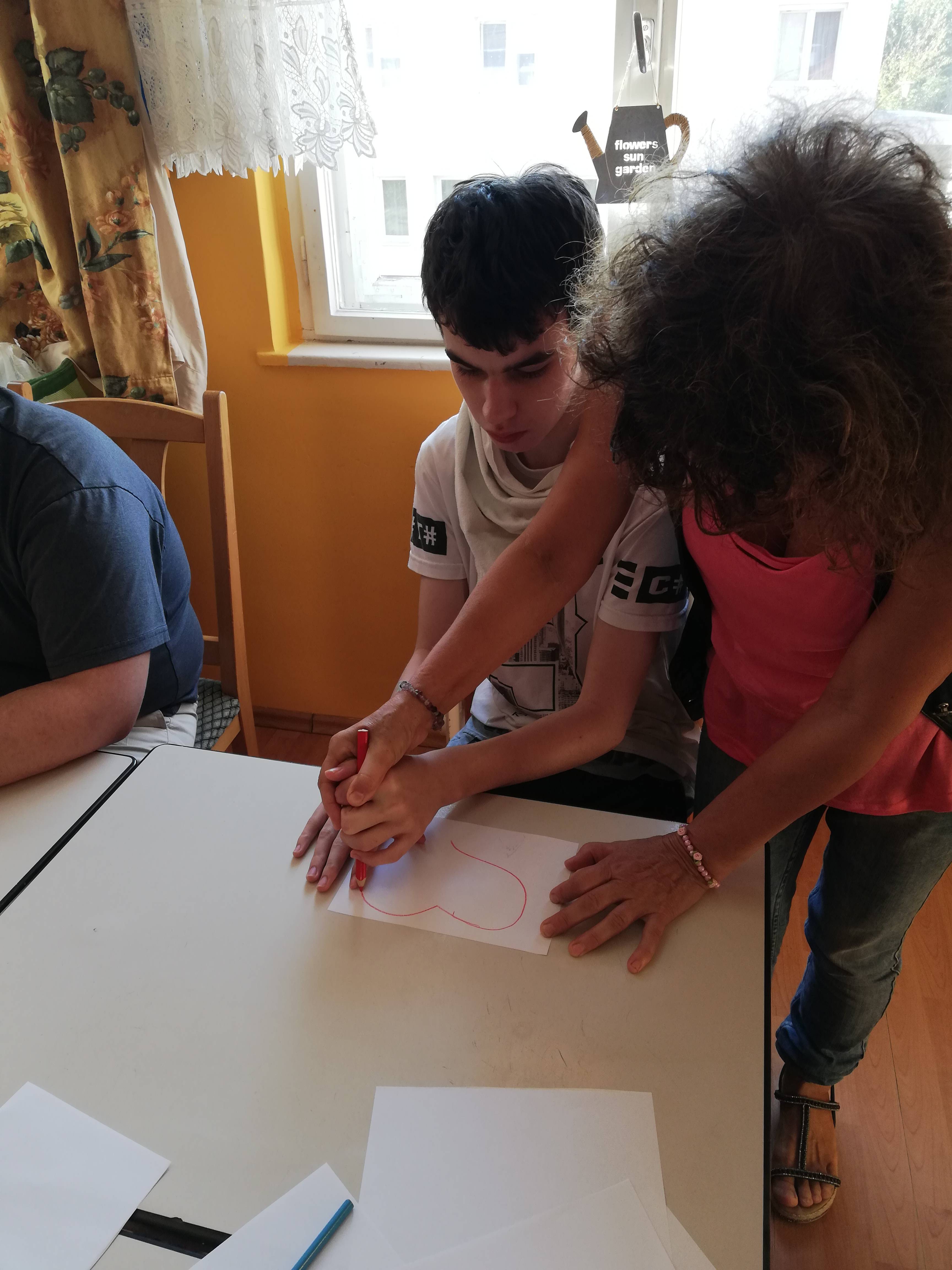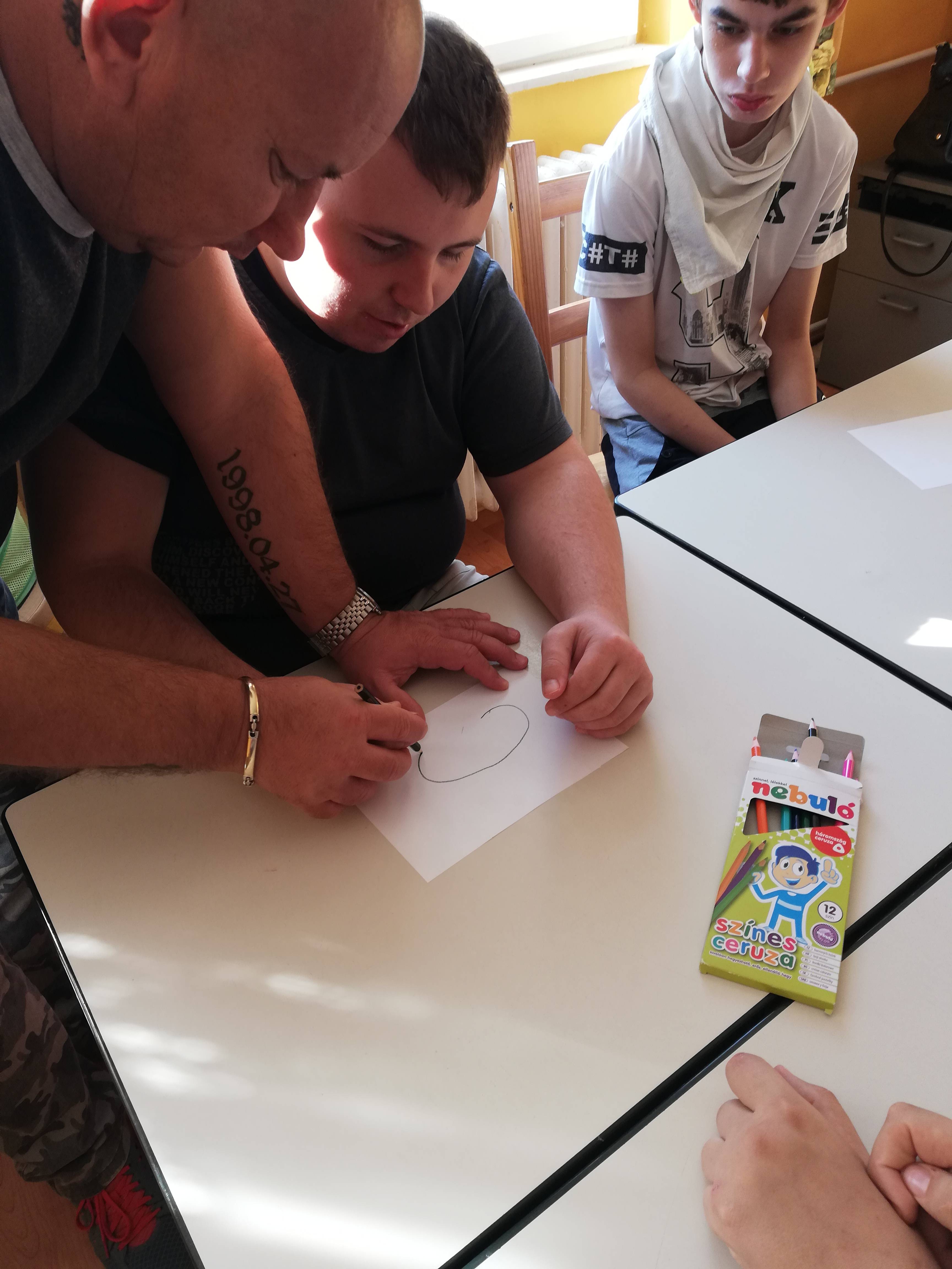 A Napraforgó csoportban jelenleg hat tanuló van, mindegyikük súlyosan-halmozottan sérült. A csoportban három beszélő tanuló van, a többiek sajátos spontán kialakult gesztus nyelvet használnak, illetve egy tanulóm sajátos szavakat használ gesztusokkal vegyítve. A hónap boldogságórájának témája a hála. A gyerekekkel saját életemből hozott példákon keresztül igyekeztem megértetni, hogy mit jelent a hála, én miért lehetek hálás, kinek lehetek ezekért hálás. A tanulókkal kötetlen beszélgetés formájában gyűjtöttük össze, hogy ők miért hálásak és kinek. Mi plakátot készítettünk, hogy miért lehetünk hálásak reggel, délben este, a plakátot függőlegesen három színre osztva készítettük, ezek jelképezik a három napszakot. Egyszerű formában ábrázoltunk, a tanulók választották ki, hogy melyik napszakhoz mit rajzolnak. A rajzolásban, színezésben a jelenlévő tanulók mind segítséget igényeltek. A foglalkozás jó hangulatban, családias légkörben telt.