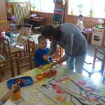 Ezeken a napokon a szabadjáték spontán kialakult helyzeteiben erősítettük a boldogság és a hála fogalmát a gyermekekben. Például: Lotti hálás volt Hunornak, hogy az egyik játékautót neki adta, hogy tudjon játszani vele. Öröme kifejezéseként, köszönetképp Lotti megölelte Hunort.