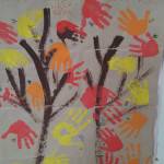 Figyelemfelhívásként, kapott a Kisvakond csoport egy levelet, melyben az állt, hogy a Kerekerdő közepén áll egy Fa, ki nagyon magányos. Hálás lenne, ha az Ősz-manók, -azaz a gyermekek- szólnának az őszi faleveleknek, hogy látogassák meg Őt. Ehhez varázslatra van szükség. Így tenyérlenyomattal, az ősz színeit (tempera-festék) és a gyermekek előzetes ismereteit felelevenítve varázsoltuk varázspálcáinkkal (ecsettel) az őszi faleveleket a Fára, aki végül nagyon hálás volt -a Manóknak azt üzente-, így már nem magányos.