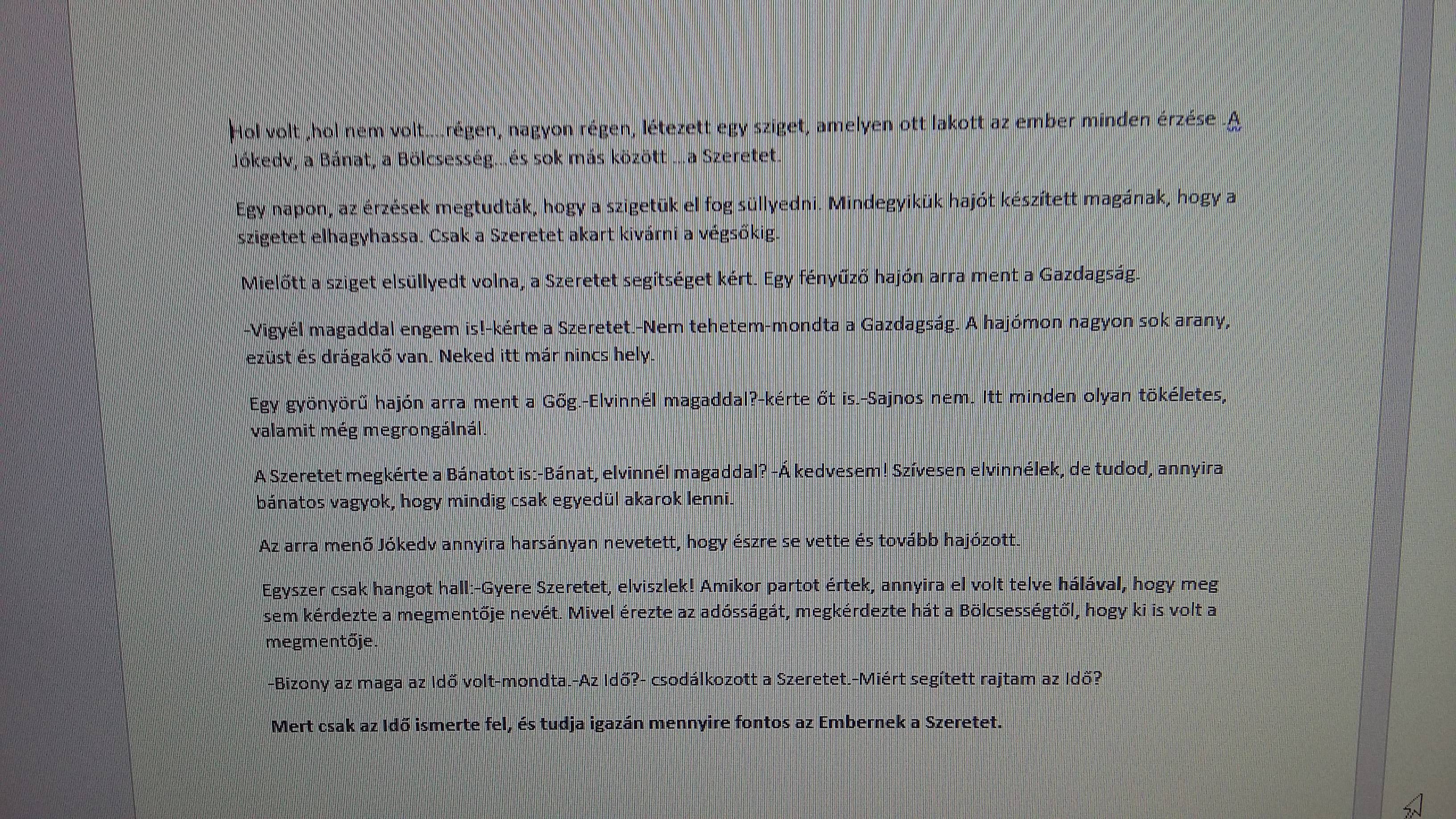 Egy történetet találtam a szeretetről, háláról,melyet legépeltem és beragasztottunk a Boldog füzetbe.