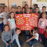A gyerekek nagy örömmel és érdeklődéssel vettek részt a boldogságórán. Megbeszéltük mit jelent a hála, többször meghallgattuk Bagdi Bella a hála témához tartozó dalát, amit a gyerekek már nagyon ügyesen tudnak énekelni. Elkészítettük a közös plakátunkat, hogy reggel, délben, este mi mindenért lehetünk hálásak, majd kitettük a tantermünk mellé a folyosóra, hogy az iskolába járó gyerekek is megcsodálhassák.