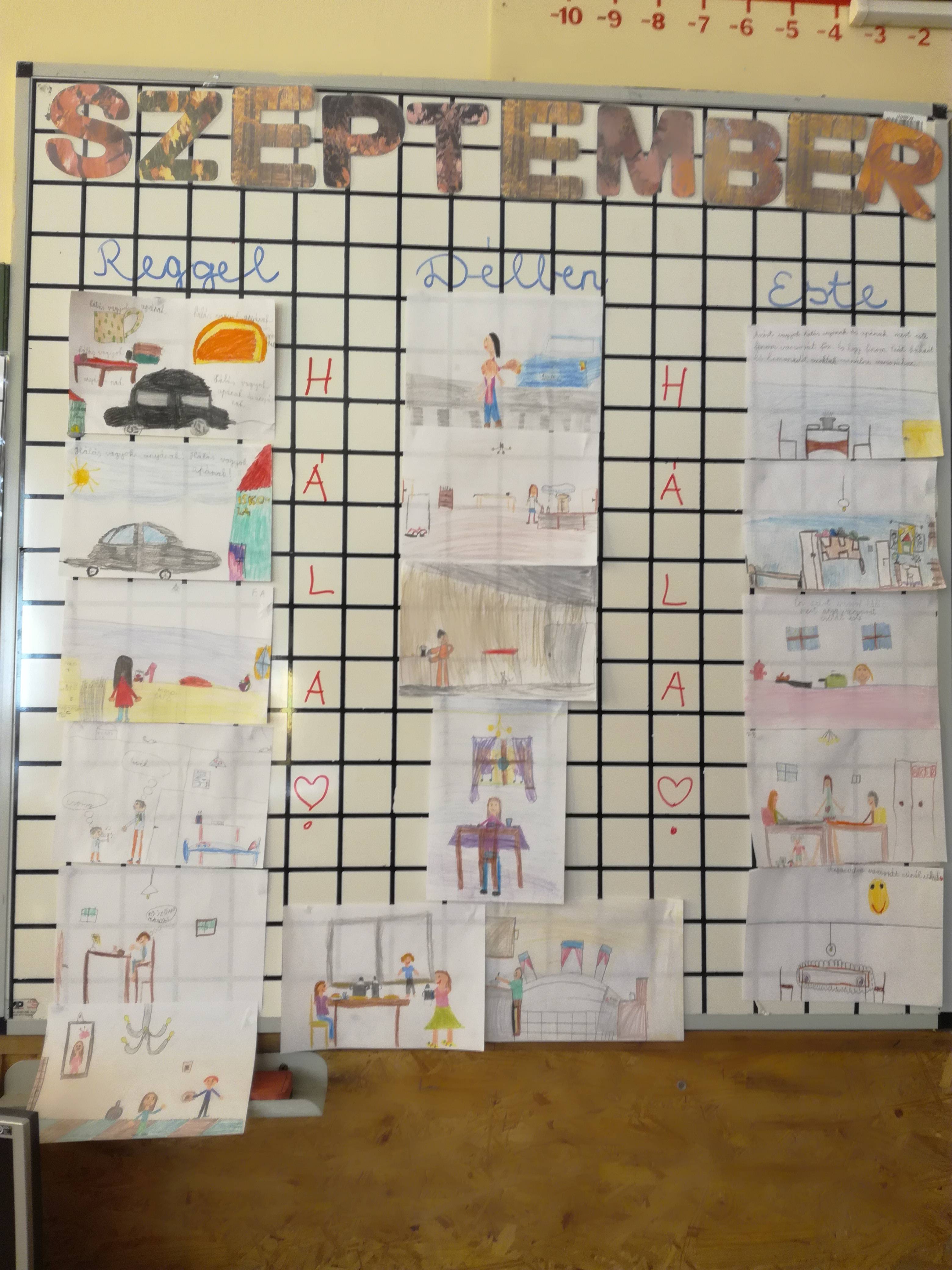 A beszélgetést rajzolás követte, az érzett hálát napszakok szerint csoportosítottuk.