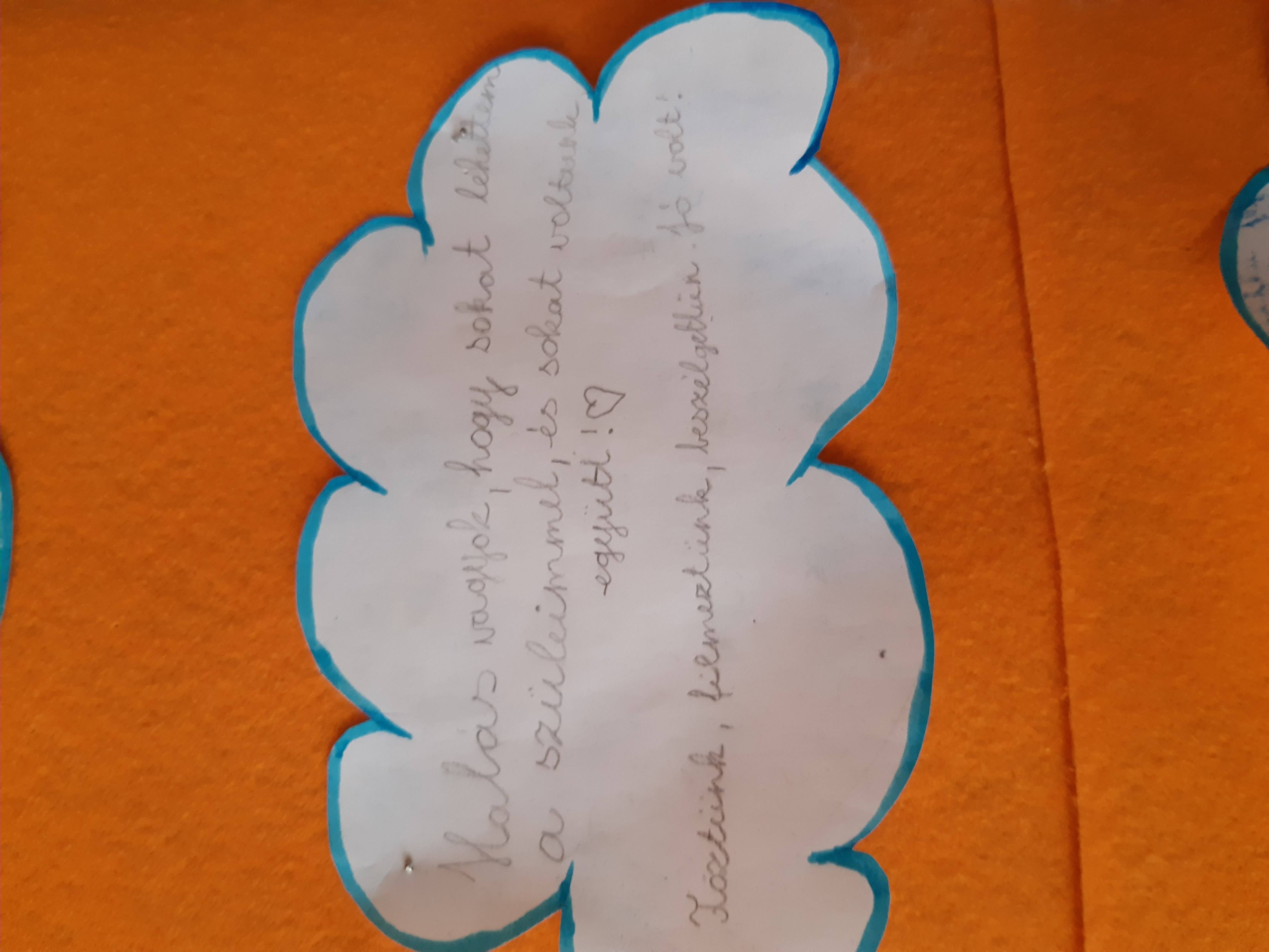 Fontosnak tartottuk, hogy tanév elején megbeszéljük és lezárjuk a digitális oktatás mentális tapasztalatait. Talán meglepő, hogy milyen nagyon hiányzott a gyerekeknek az iskola, mennyire örültek, hogy újra kinyíltak az iskola kapui. Megkerestük hát a rosszabn a jót, miért is lehetünk hálásak a karantén idején. Azért is fontos ez, mert segíthet fókuszálni, ha véletlenül hasonló helyzetbe kerülünk még. Felhőkbe burkoltuk ezeket a gondolatokat.