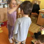 Egy színezővel és hozzá kapcsolódó mondókával vezettem át tevékenységbe a ráhangolódás szakaszát. Meghalltatták a kis mondókát:” Ha valakit megbántottál, akit nagyon szeretsz…”, ami annyira tetszett a gyermekeknek, hogy többször kellett elismételni nekik.