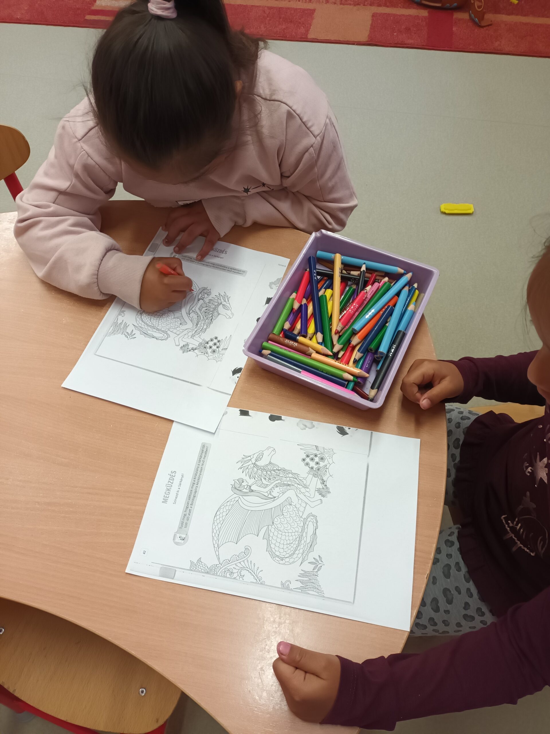Csoportommal a mese segítségével ismertettem meg a témát nagyon élvezték a mesét sokat beszelgettünk a mese cselekményéről. Majd játékidőben ők önálló történetét is alkottak a sárkánnyal. A lányok örömmel színezék ki a színező majd saját sárkányt is rajzoltak. A ráhangolódas már szinte rutinná vált a csoport életében az éledő virág jatékkal.