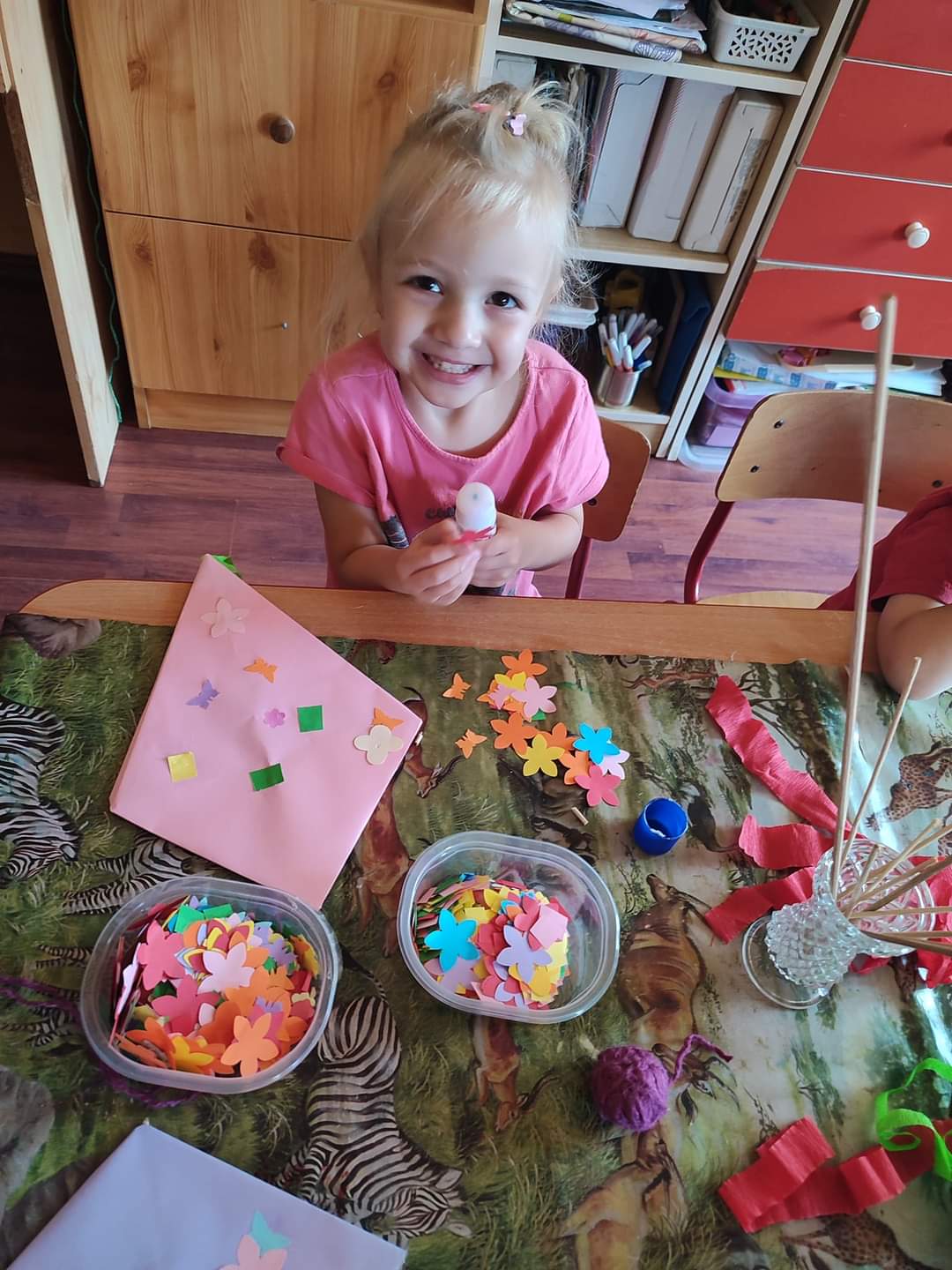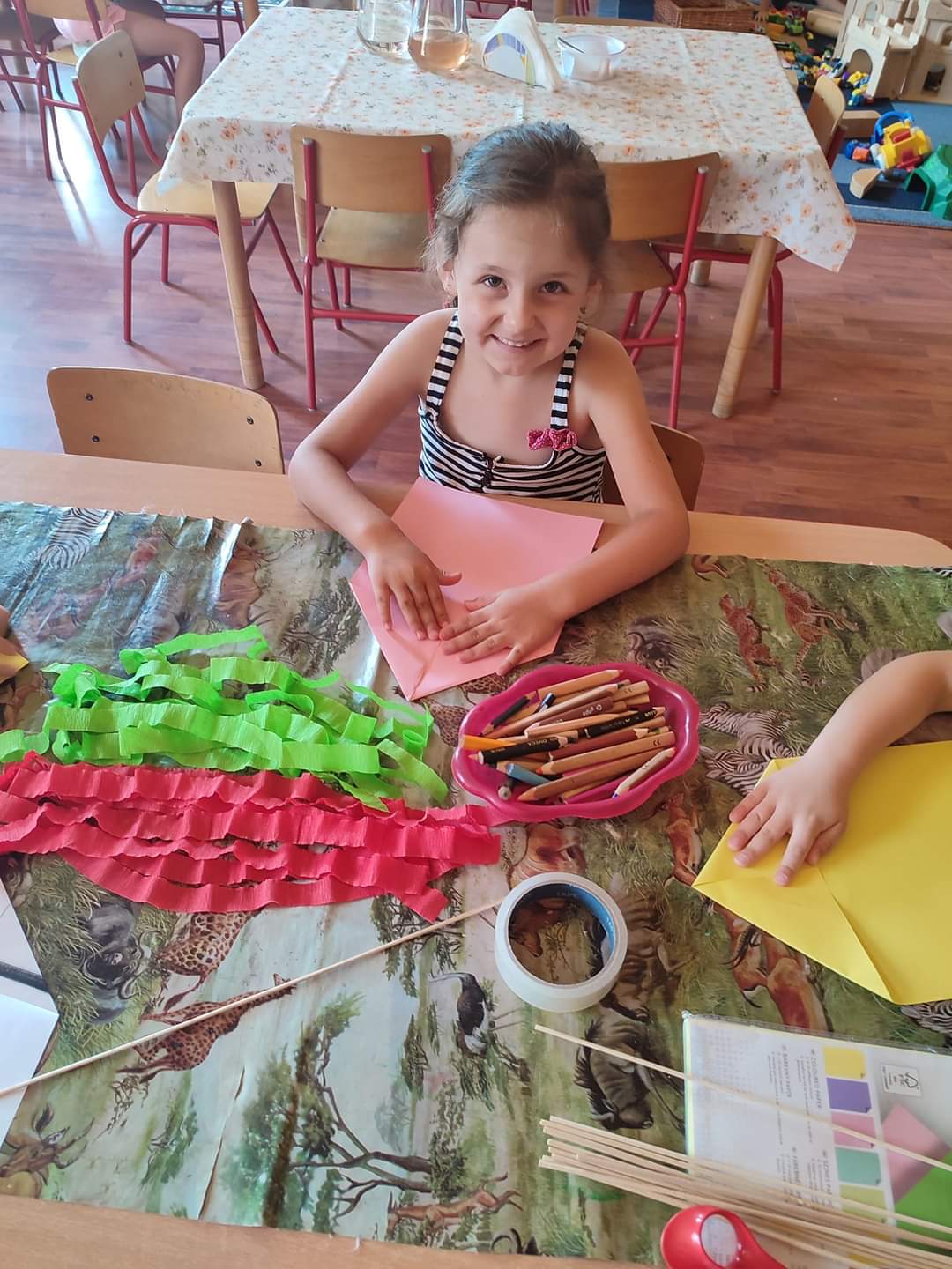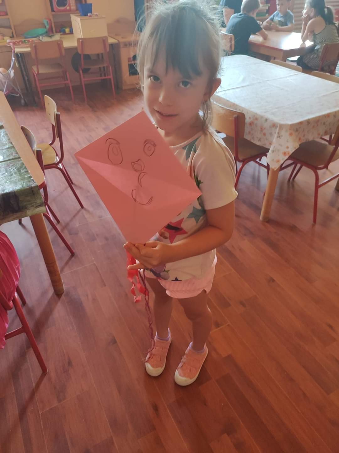 A foglalkozást a „Repül a madár, szárnyalva száll, mert szabad madár” relaxációval kezdtük, mely szorosan összefügg a foglalkozásunkkal is. A fenntarthatóságon belül a szélenergiát céloztuk meg témánknak. Emiatt készítettünk papírsárkányt a gyerekekkel, a ragasztott papírdíszeket pedig még a tavasszal megmaradt barkácsolásunkból használtuk fel, ezért az újrahasznosítás is szóba került. A gyerekek nagyon sok fontos ismeretet megjegyeztek a Föld napja alkalmából megrendezett áprilisi családi napunkról, ezért egy szép kerek beszélgetés és kép nézegetés alakult ki a kreatívkodás közben, illetve utána. Az elkészült alkotásokat a gyermekek kipróbálhatták az udvaron és haza is vihették. A foglalkozás végén megbeszéltük, hogy ki mit tesz otthon a bolygónk védelme érdekében.