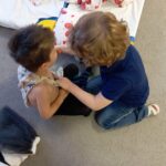 Reggeli körünkben eljátszottuk, hogy buszra szállunk, minden hely foglalt, mikor idős bácsi, néni, anyuka kisgyerekkel száll fel és a gyerekek átadták a helyüket. Később, játékidőben, spontán is játszották ezt a játékot.