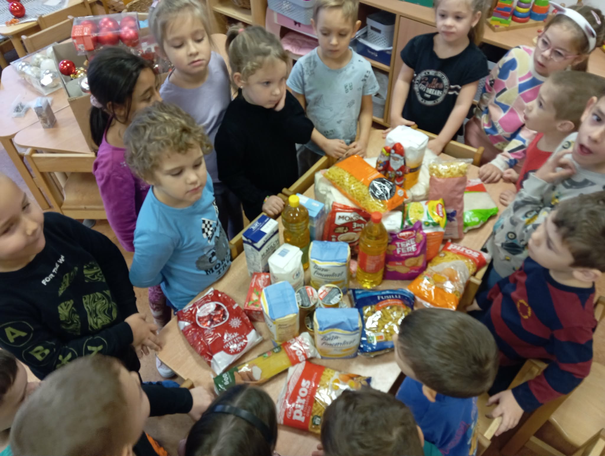 A boldogító jó cselekedetek hónapját rengeteg jó cselekedettel töltöttük meg. Ilyenkor, karácsony közelében, mindig gyűjtenek adományokat, az egyikbe – amelyikben óvodánk gyűjtött tartós élelmiszert – mi is be kapcsolódtunk. Elmeséltem a gyerekeknek, hogy vannak olyan családok, ahol nem jut elég pénz ennivalóra és ajándékokra és megfogadtuk, hogy segítünk nekik! Gyerekek, szülők hozták, gyűjtötték az ajándékokat.