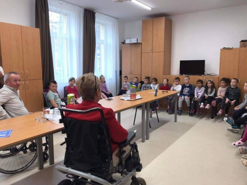 Érzékenyítő napon vett részt csoportunk, ahol mozgás-, látás-, és hallássérült emberekkel ismerkedhettek meg a gyerekek. Meséltek a „mássággal élők” mindennapjaikról, nehézségeikről és örömeikről. Megtudtuk, hogyan segíthetünk nekik úgy, hogy hasznos, előzékeny és természetes módon tegyük mindezt.