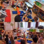 A gyerekek közben gyakorolták az együttműködést, az eszközök használatával az egymásra való odafigyelést, alkalmazkodást. Fejlődött mozgáskoordinációjuk és egyensúlyérzékük. Alakítottuk a mozgáshoz kapcsolódó pozitív érzéseiket, a mesés kerettel motiváltuk és figyelmüket fenntartottuk. A mese és mozgás összekapcsolása során a gyerekek koncentrációja és szándékos figyelme fokozott volt, ahogy figyelemmegosztásuk és reakcióidejük is alakult. Motiváló eszközök voltak számukra, a kalapok és koronák.