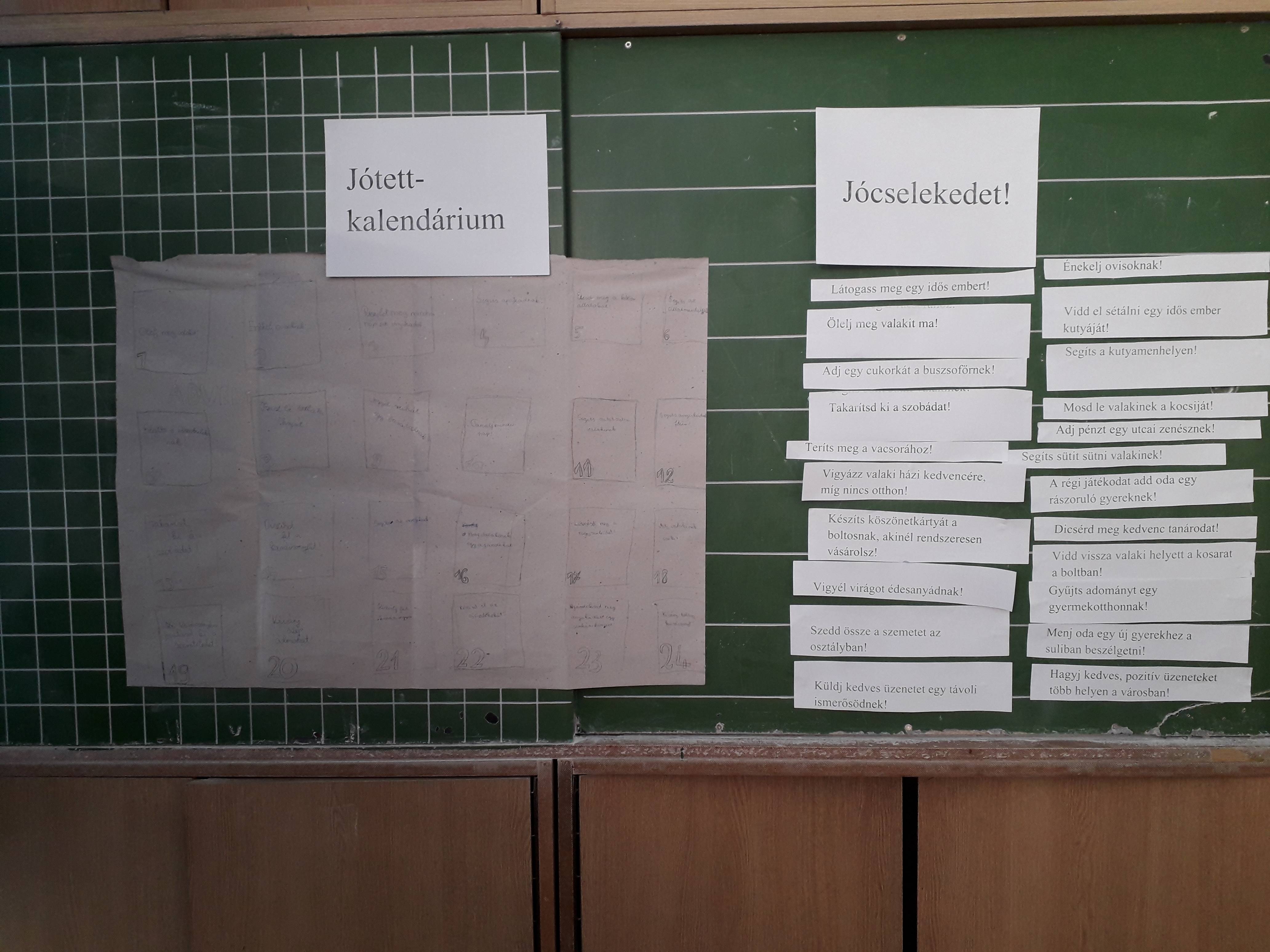 A gyerekekkel megnéztük először a fotót,melyen megbeszéltük, hogy milyen jó cselekedetet végez a hölgy.Majd összegyűjtöttük, hogy Ők milyen jó cselekedeteket végezhetnek otthon a családjukban az iskolában a tanáraikkal szemben. Végül elkészítettük az Adventi Jó cselekedet kalendáriumot.