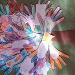 Közösen megalkottuk a fàt amelynek törzse az èn karom mintàjjàròl kèszült,a lombjàt pedig a gyermek munkàkbòl alakìtottam ki. A gyermekek a tenyèr mintàt kiszìneztèk,majd lerajzolta mindenki,hogy mièrt lehetünk hàlàsak.