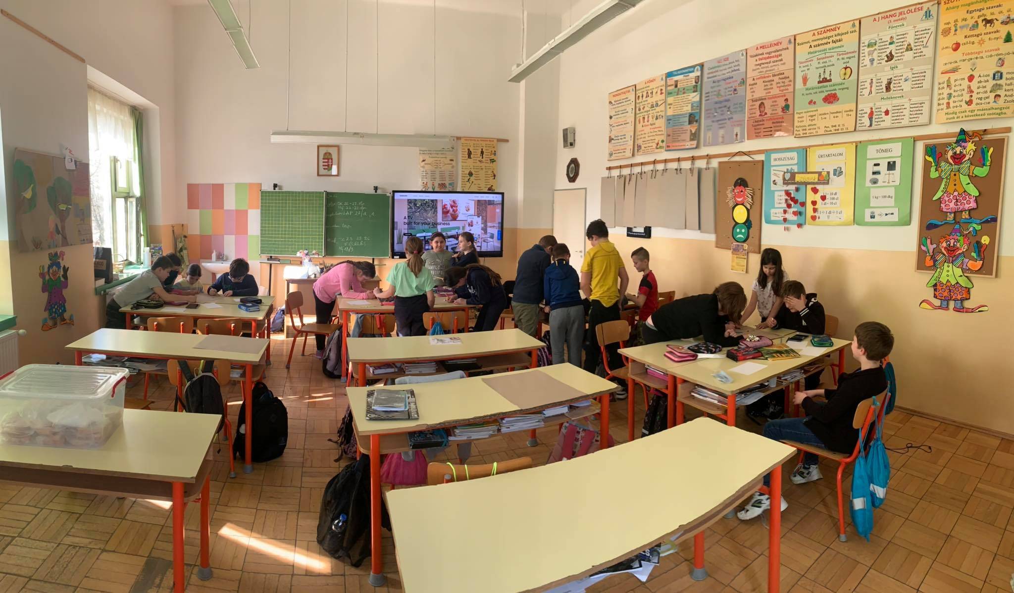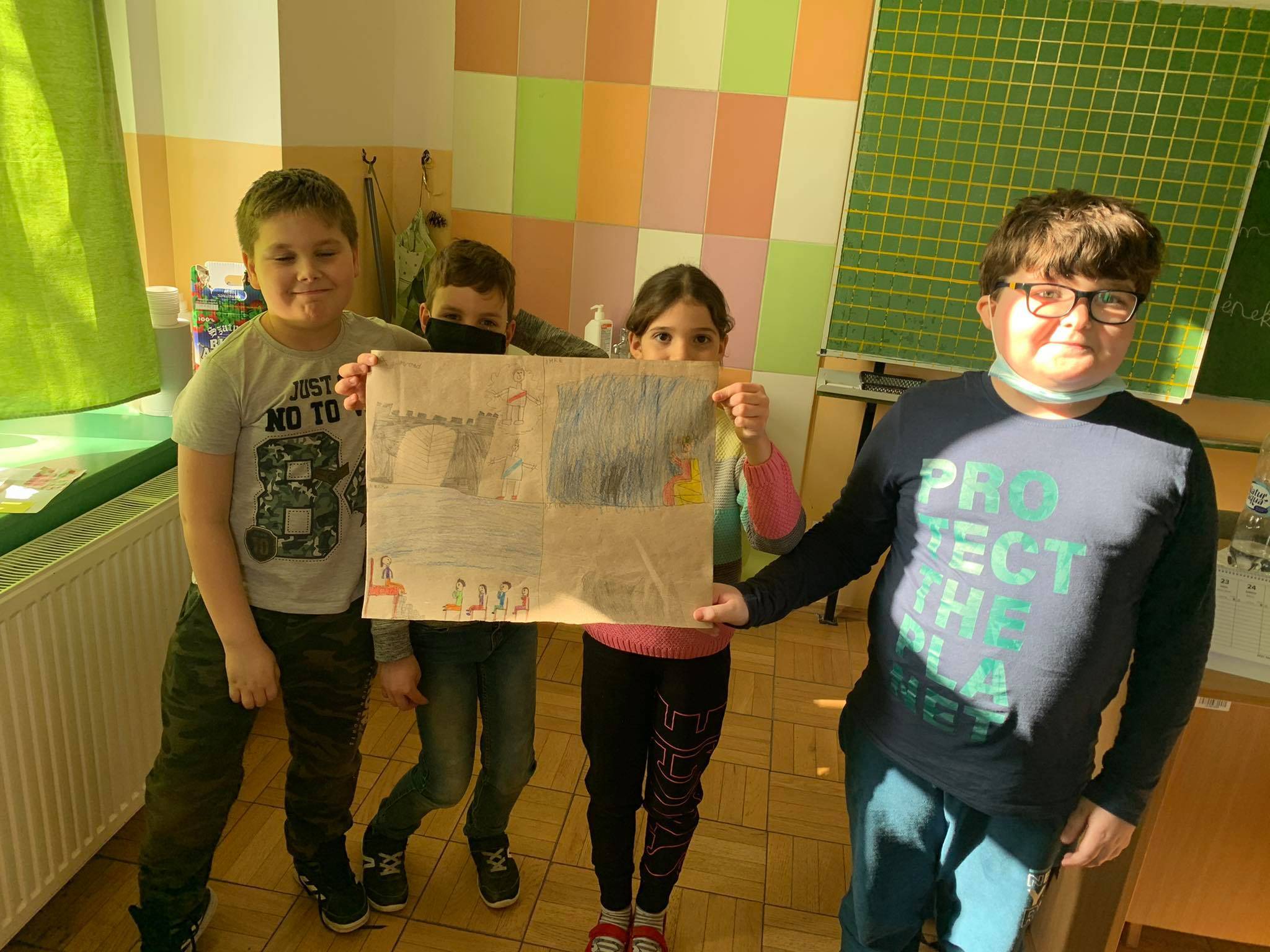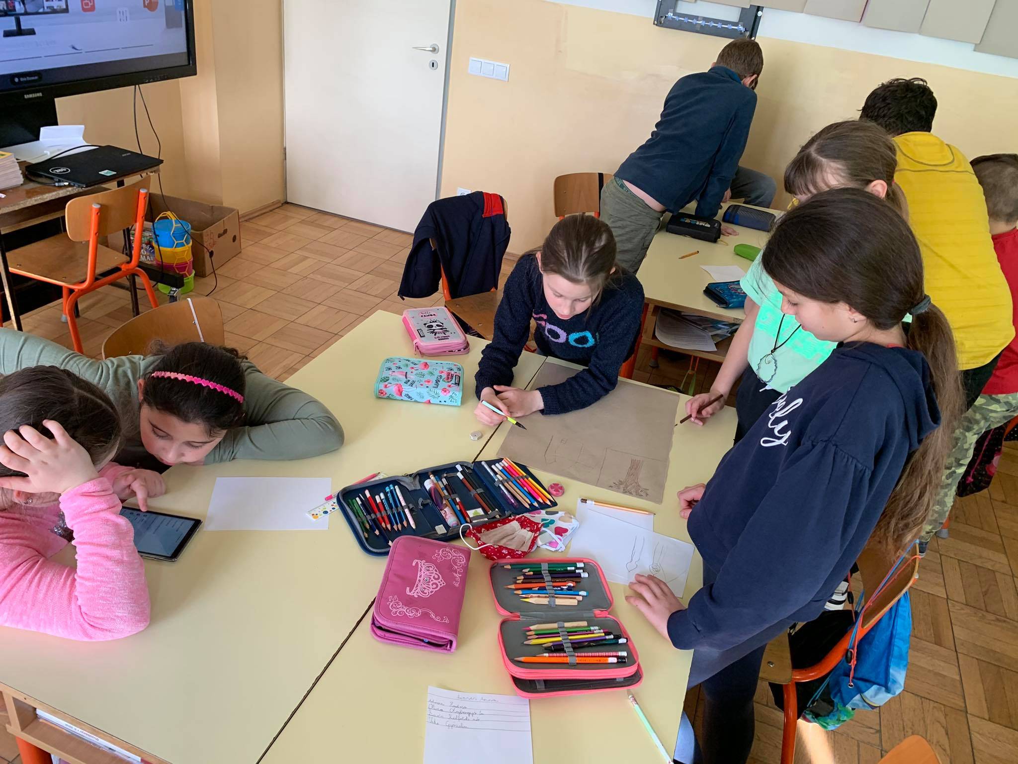 A foglalkozás elején 4-5 fős csoportokat alkottunk. A sikerült feladat, gyorsan beindította a tanulók fantáziáját és hihetetlenül kreatív dramatizálásokat láthattunk. A nevünk feladatot hatalmas lelékesedés fogadta. Minden csoport kapott egy tabletet, amin keresztül kerestek rá saját nevük nevük jelentésére, ,majd rajzolták le. Késztettünk egy olyan faliújságot melyen az osztály minden tanulójának a nevének jelentése megtalálható.