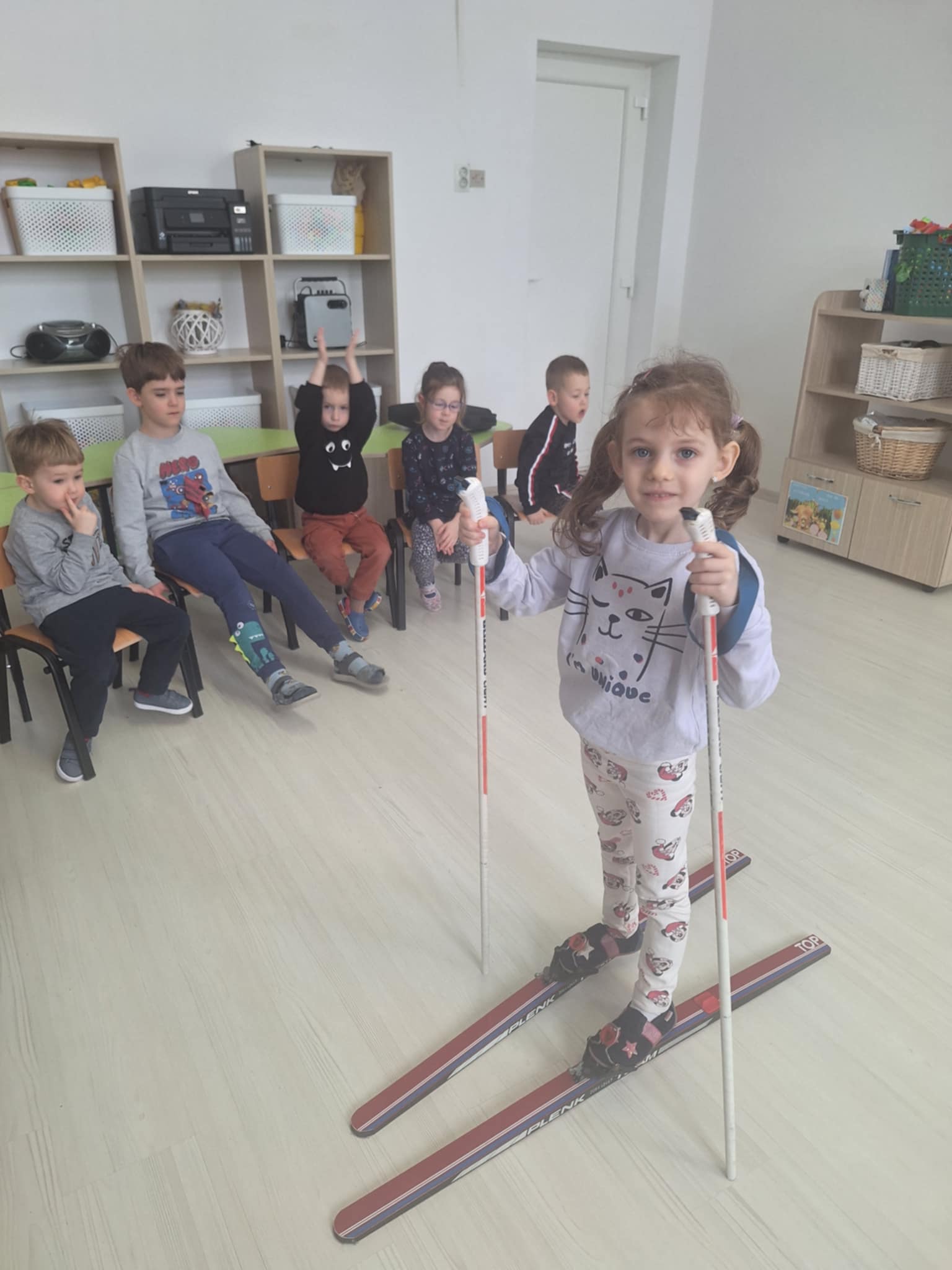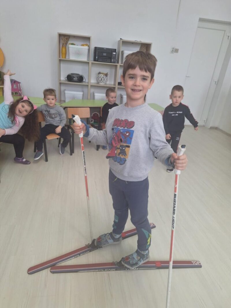 A sílécek kipróbálása igazi bátorságpróba volt! A gyerekek megtanulták, hogy az új célok elérése (mint a csúszás és a koordináció) eleinte nehéz lehet, de gyakorlással egyre ügyesebbek leszünk. Megbeszéltük, hogy az „elesés” is a tanulás része, a lényeg, hogy mindig felálljunk.