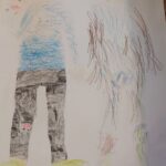 Megint hétfő, lerajzolták egymást a gyerekek nagy papírra, és kiszínezték egymást. Persze itt meg kellett figyelni egymás ruháját, szeme, haja színét, stb. Így jó kis társas kontextus alakult ki. Kijavították egymás munkáját, ötleteket adtak, segítették egymást.