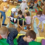 Pillanatkapitányhoz kapcsolódóan hajós játékot kezdeményeztem, ami nagyon tartalmas lett a végén, sokáig játszottak vele a gyerekek, színeztek kiszászlót a hajóra, felfordított asztal adta a hajótestet, és összekötöttük a lakatlan szigettel, tavacskával, és egy kis mindfullness ringatással, vízcsepp csurgással az arcunkon, amit az ugrándozó delfinek csaptak az arcunkba.