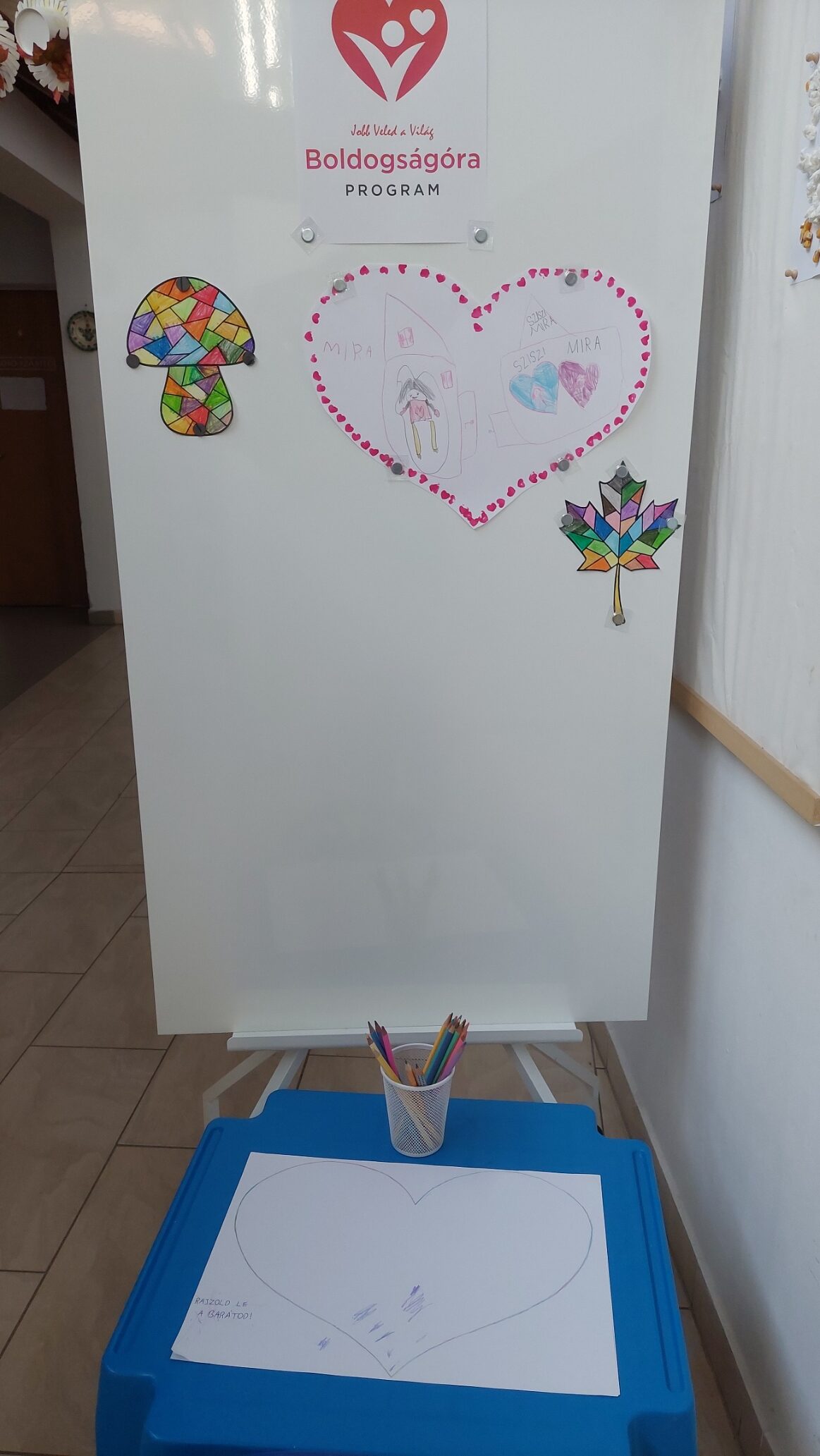Tettem ki a folyosóra egy nagy szívet, hogy a gyerekek rajzolják bele barátaikat.