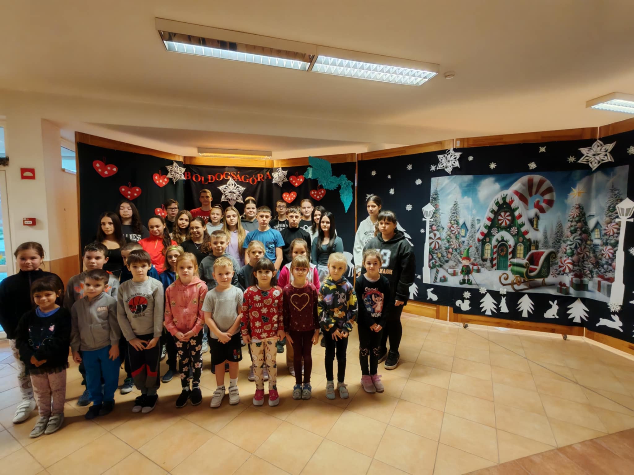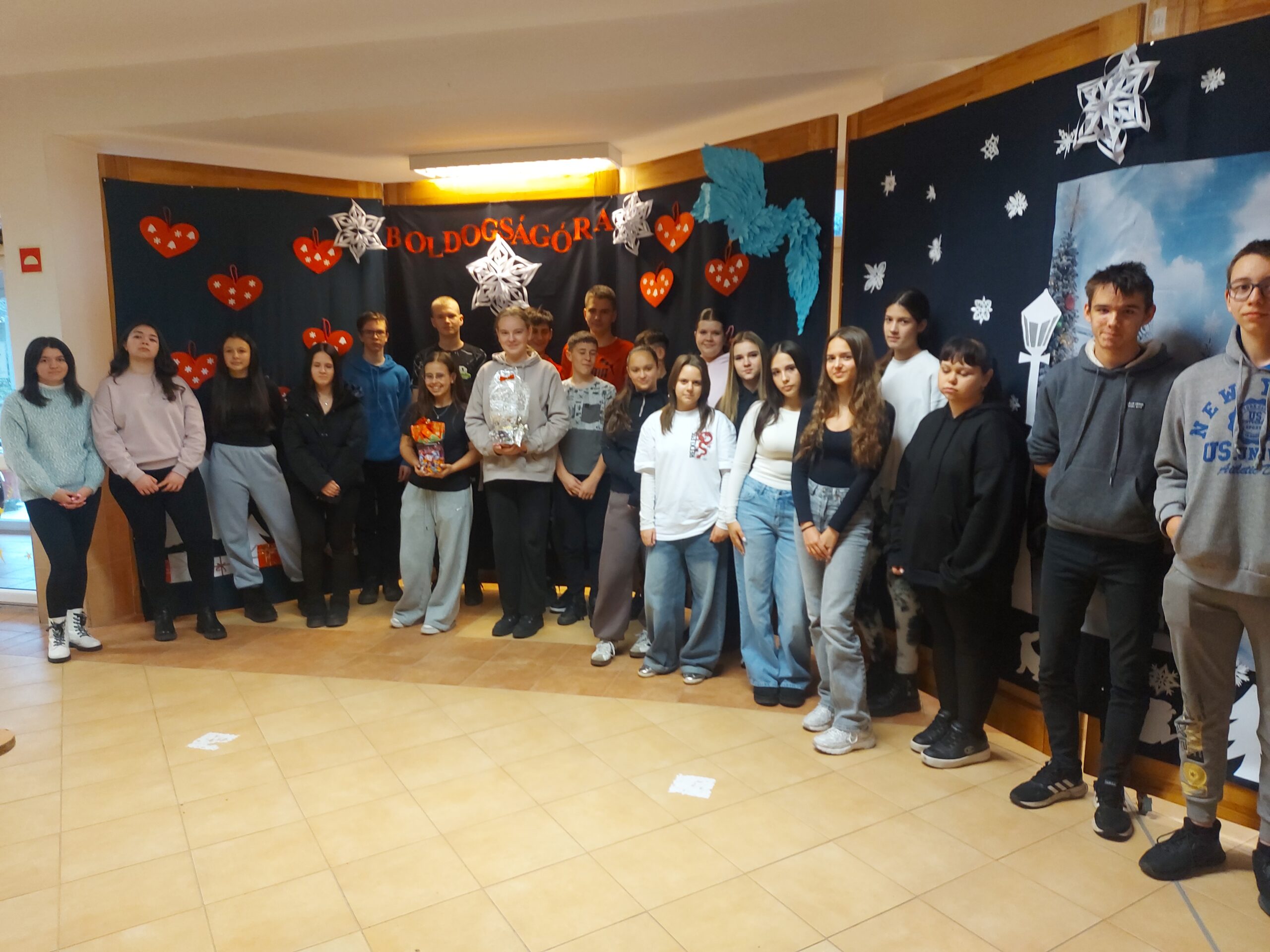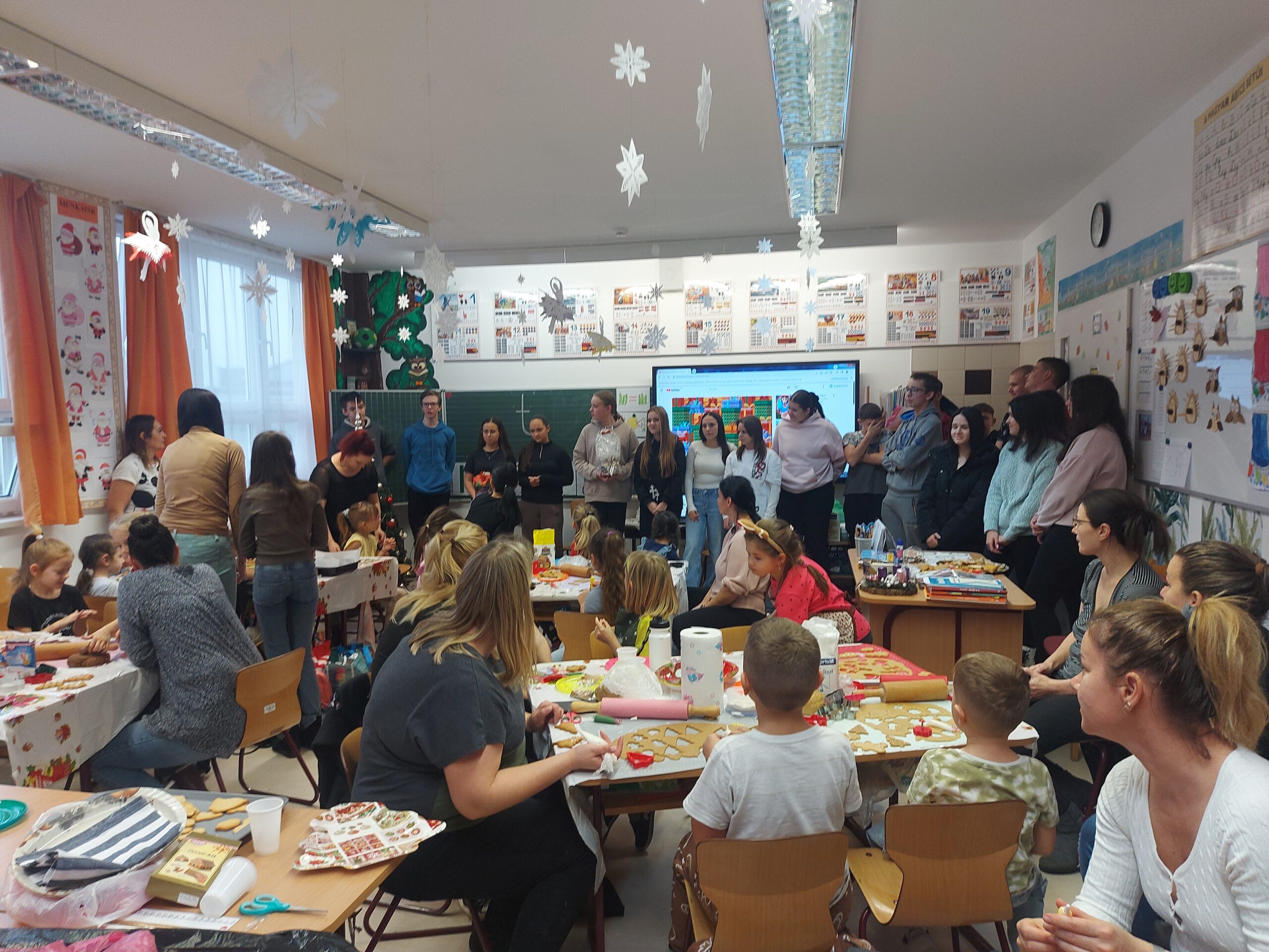 Az adventi időszakban feldíszítettük termünket, közösen átalakítottuk az aulában elhelyezett paravánunkat, majd összegyűjtött apróságainkkal meglátogattuk az iskola egyik 1.osztályát. Nem vittünk mást, csak szívünk melegét, puha plüssöket és apró cukorkákat néhány jókívánsággal meghintve. Viszonzásként ízletes mézeskalácsot, boldogságdalt és cuki mosolyokat kaptunk. Az ünnepi ráhangolódás tökéletesen sikerült!