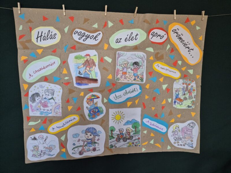 Az egész hónapunk az apró örömök jegyében telt. A megszokott boldogságórák mellett a kollégiumban minden este szántunk rá egy kis időt, hogy mindenki elmondhassa, milyen apró öröm érte az adott napon. Így a gyerekek pár nap után elkezdtek tudatosan odafigyelni a kisebb jó dolgokra. Az értékelésüket fokozta, hogy hallották, mások minek tudtak örülni. A hónapot pedig most azzal fogjuk zárni, hogy a szeptember óta gyűjtögetett hálabödönbe rendszeresen beledobált cetlikből húzunk, felolvassuk őket, és visszaidézzük a szeptember óta velünk történt jó dolgokat.