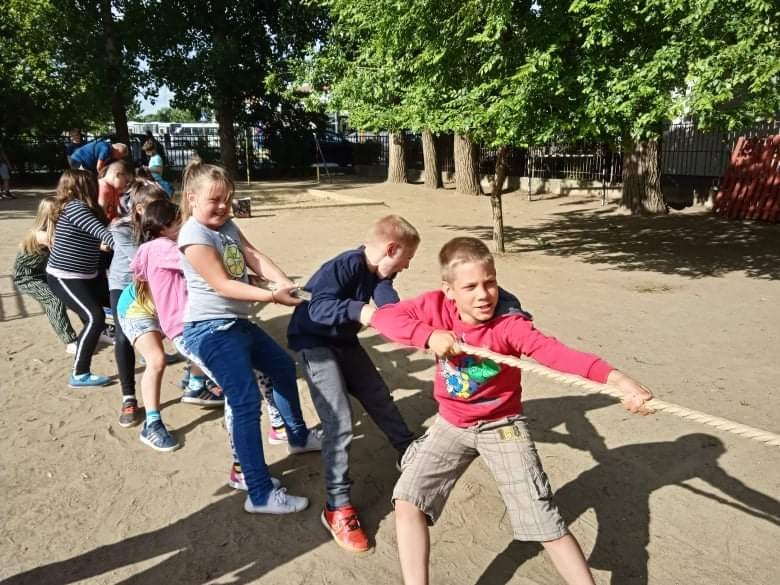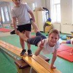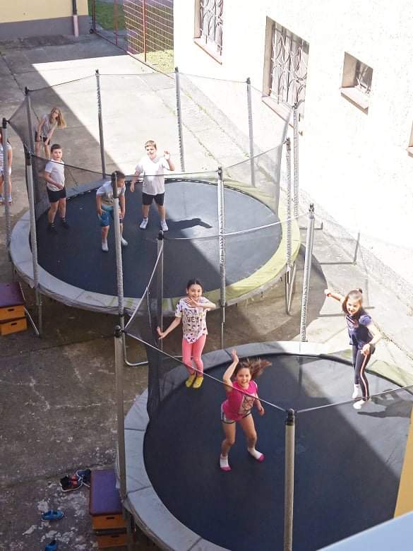 Közös aerobic, szkander, kötélhúzás, foci, trambulinozás, grundbirkózás. Mozgás közben Bagdi Bella dalai szóltak.