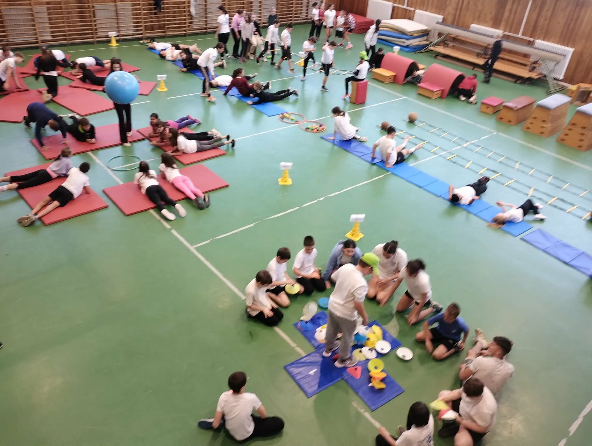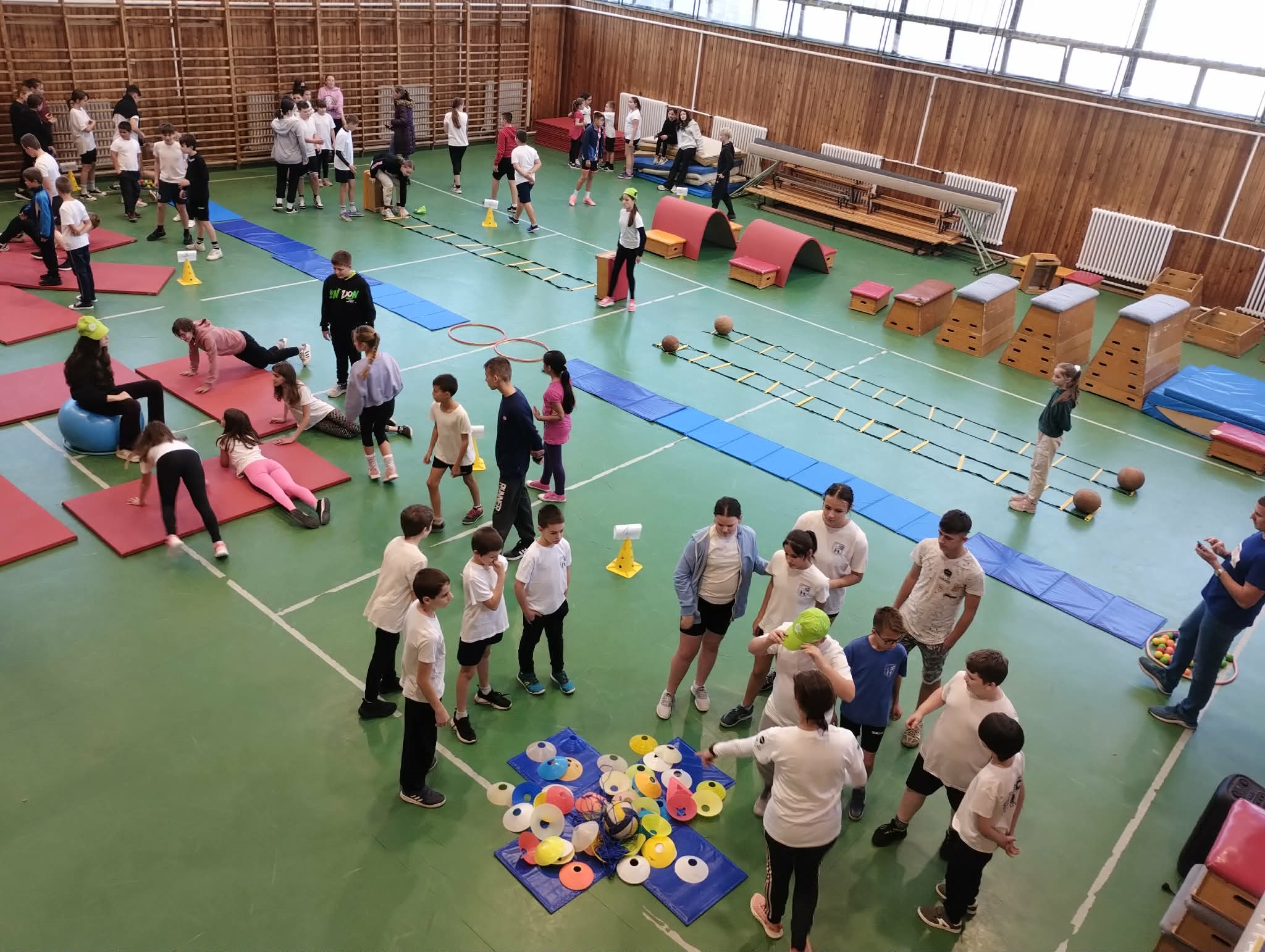A társas kapcsolatok együttműködésére azt gondoltam ki, hogy nem csak az osztályt, de az iskola több diákját, osztályait vonom be egy tornatermi sportfesztivál keretein belül. Ezt megelőzte az, hogy az egyik szünetben egy közös tánc erejére szedtem, szedtük össze az iskola diákjait és együtt, közösen táncolhattak a jól ismert zenékre. Igazi felfrissülés volt. A torneteremben pedig a gyerekek hét változatos állomáson próbálhatták ki ügyességüket, kitartásukat és csapatszellemüket. Forgószínpad-szerűen mentek végig a vegyes csapatok a pályákon, ahol nagyon figyeltek egymásra a gyerekek.A gyerekek hatalmas lelkesedéssel jártak állomásról állomásra, és mindenhol új élményekkel gazdagodtak. A sportfesztivál nemcsak a mozgás örömét adta, hanem erősítette az együttműködést, a közösségi élményt és a jó hangulatot is. A nap végére mindenki fáradtan, de büszkén és mosolyogva tért haza. Örörm volt látni a vegyes csapatok sokszínűségét, hogy sehol nem volt vita, veszekedés, jól tudtak együtt működni, segítették a kisebbeket.
