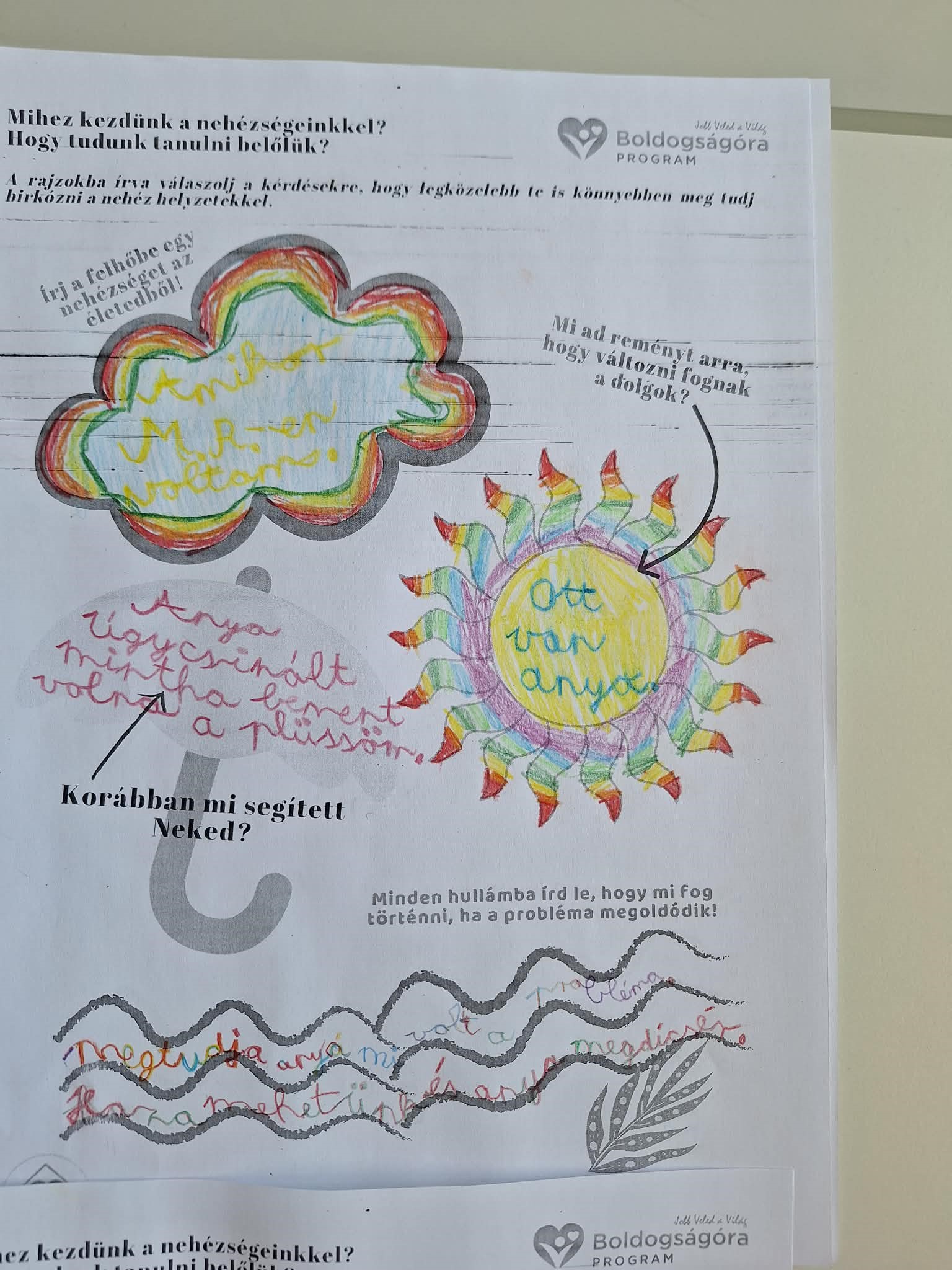A napi stressz kezeléséről beszélgettünk- rossz jegy, anya/ barát megharagudott, nem voltam sikeres edzésen…- mi segít átlendülni, feldolgozni ? A gyerekek a barátaik, szüleik bizalma mellett a sportban, zenében, sétában találnak vigaszt. Van, aki naplót ír. Meghallgattuk az aranykulcs című mesét, ami alapján beszélgettünk arról, kinek mi jelenti az aranykulcsot. Elkészítettük a gondolattérképet is.