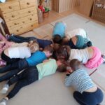 „Helyezkedjetek el a szőnyegen szétszórtan, egymástól távolabb. Csendesedjetek el, vegyetek néhány nagy levegőt. Most képzeljétek el, hogy erdei állatok vagytok az őszi avarban. Hogyan mozognak, hogyan szuszognak a kisállatok? Hagyjátok, hogy a testetek állatkaként mozgolódjon. Egyelőre egyedül matattok, élvezitek a falevelek simogatását és a meleg talajt. Nagyon szeretitek az őszt, ami sok finom táplálékot ad nektek. Most közeledjetek egymáshoz, és lassacskán alkossatok egy nagy állatkupacot! Szeretnek az állatkák egymáshoz dörgölőzni? Ha jön a hűvös este, összebújnak, és úgy melegítik egymást! Kicsit forgolódnak is… És sustorognak! Mit gondoltok miről mesélnek egymásnak?