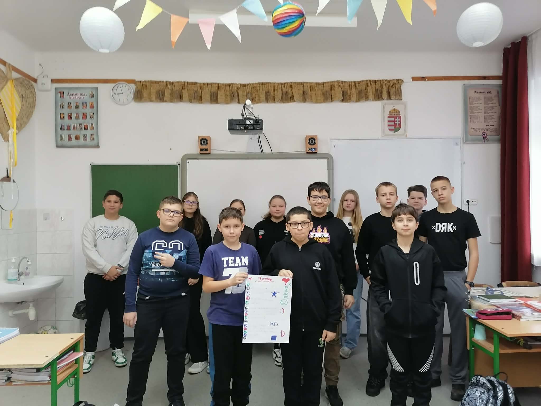 A foglalkozás elején a tanulók közösen elkészítették a 7. osztály „szabálykönyvét” egy A3-as plakát formájában. A közösen megfogalmazott irányelvek a támogató, elfogadó és együttműködésen alapuló osztályközösség működését segítik, erősítve a felelősségvállalást és az egymás iránti tiszteletet.