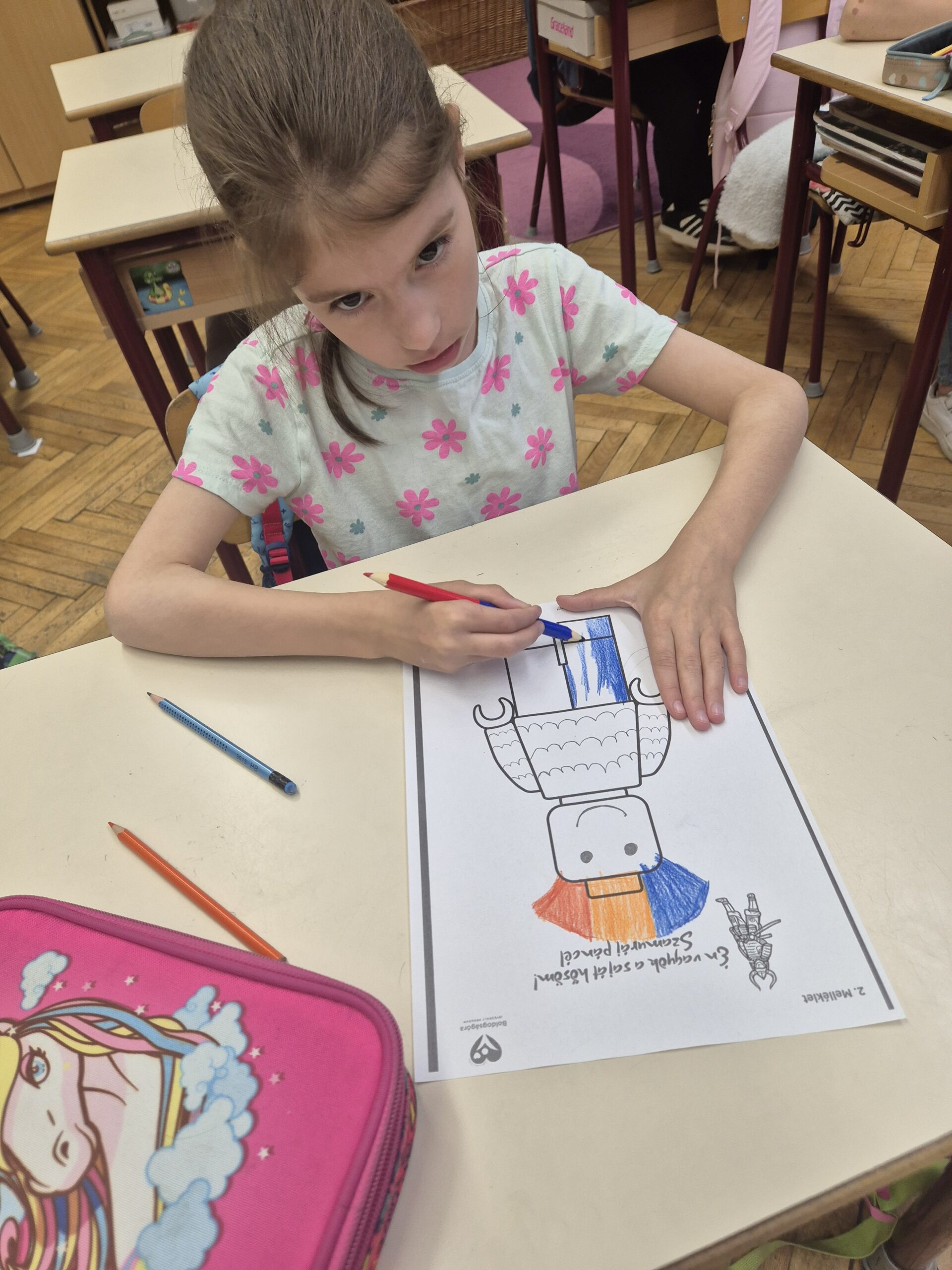 A relaxációs gyakorlat után egy kibogozós játékot játszottunk. Ezután meghallgattuk A szamuráj szerencséje mesét, majd beszélgettünk is róla. A hónap dala meghallgatása után beszélgettünk arról, hogy ki mivel szokott megküzdeni a mindennapjaikban. Ezután mindenki elkészítette a saját Szamuráj páncélját.