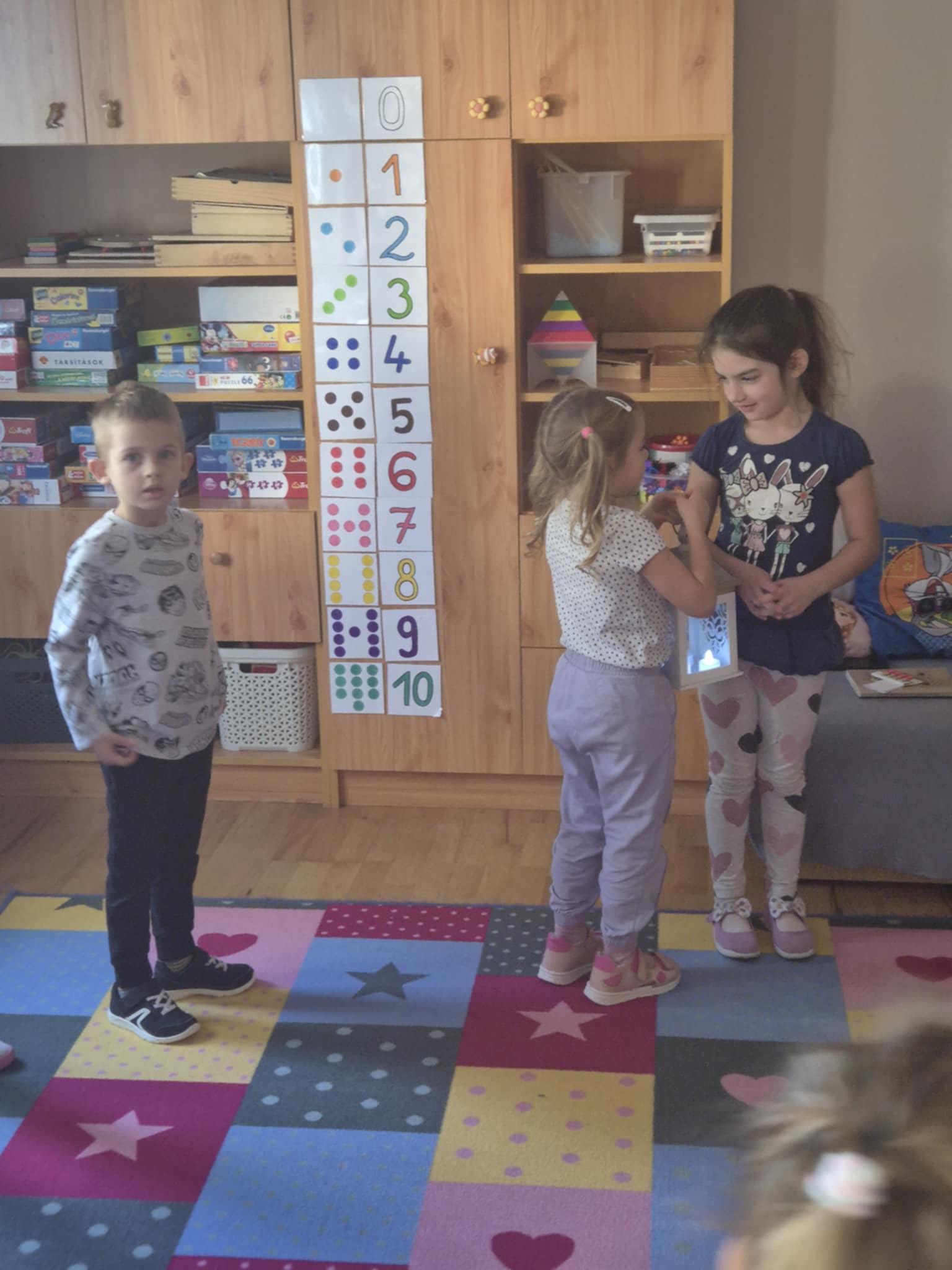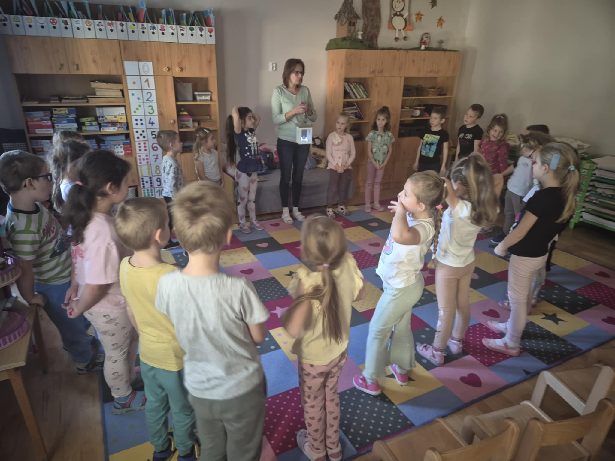 A közelgő Márton nap adta az ötletet, hogy Szent Márton legendáján keresztül közelítsem meg a „Jó cselekedetek” témakörét. Képekkel illusztrálva meséltem el a történetet, majd képről képre újra megbeszéltük a hallottakat. Érdekes kérdéseket tettek fel a gyerekek, aminek nagyon örültem. Úgy alakítottam a beszélgetést, hogy lehetőleg egymásnak válaszoljanak meg. Megható volt, amikor a félhomályos csoportban, kezükben lámpással mindenki kiválasztott egy társát,akiről csupa jót és kedveset mondott.