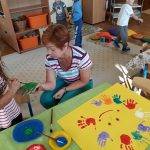 Ebben az évben már második éve dolgozunk a Boldogságóra Programmal, így nem volt ismeretlen a gyermekek számára a hála fogalma. A beszélgetőkörben többször beszélgettünk arról ki kinek miért lehet hálás. Jó volt nézni, ahogy igyekeznek egymást segíteni, sokkal figyelmesebbek, segítőkészebbek lettek egymással. Mivel ez az időszak a visszaszoktatás időszaka, olyan közös feladatot találtunk ki, amelyben mindenki saját fejlettségének megfelelően tudott részt venni. Közösen készítettünk egy „Hála napocskát” a gyerekek tenyérlenyomatával, amibe beleírtuk, ki miért kinek hálás. Ez a hála napocska egész évben a csoportunkat fogja díszíteni emlékeztetve Bennünket a hála fontosságára.