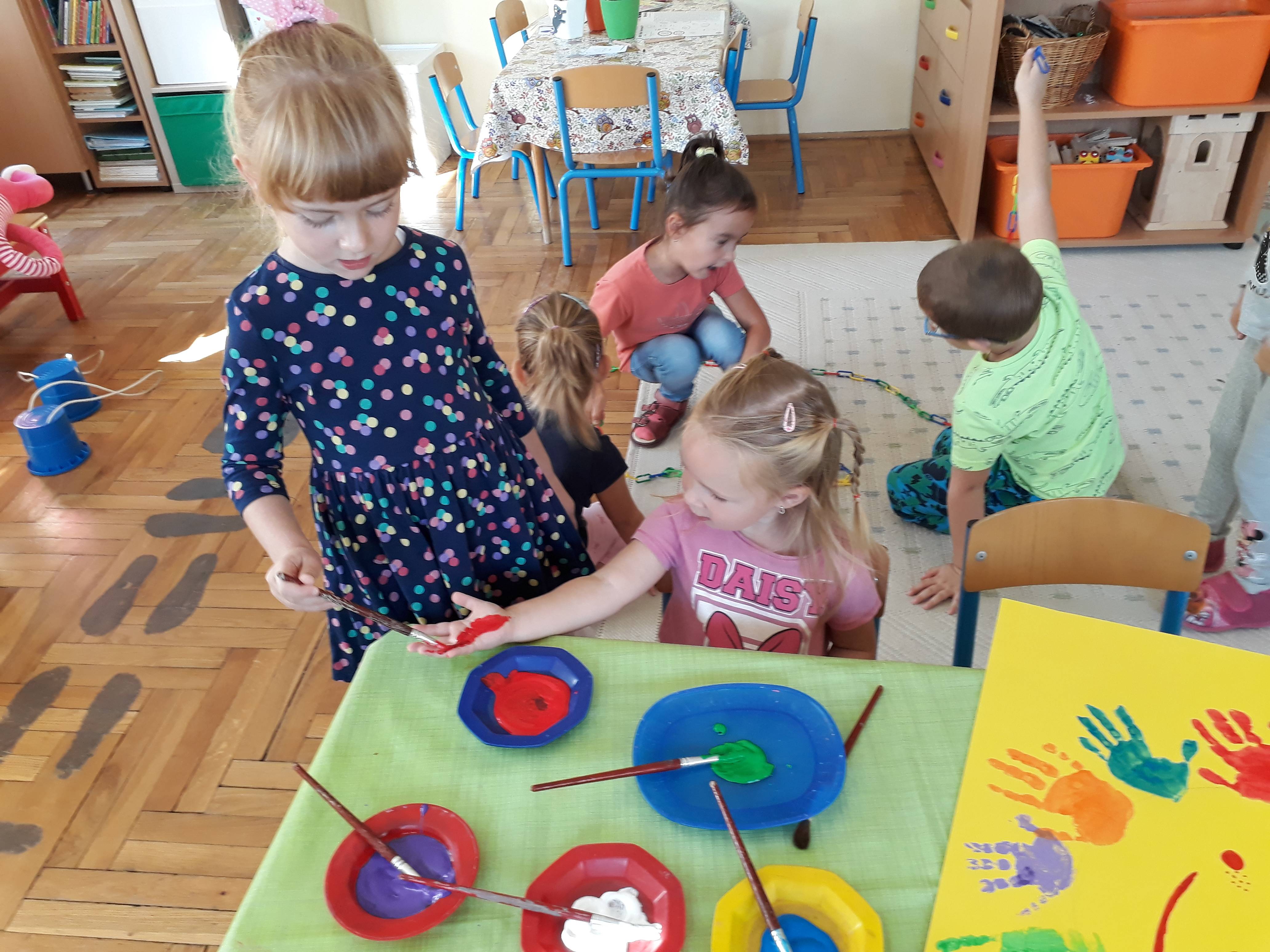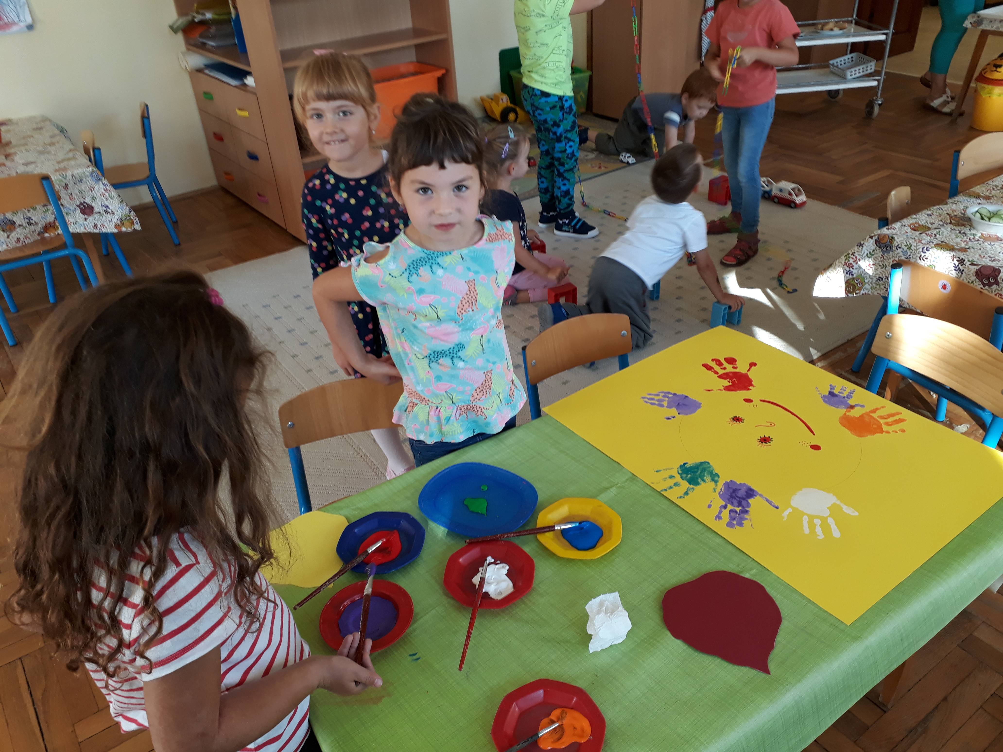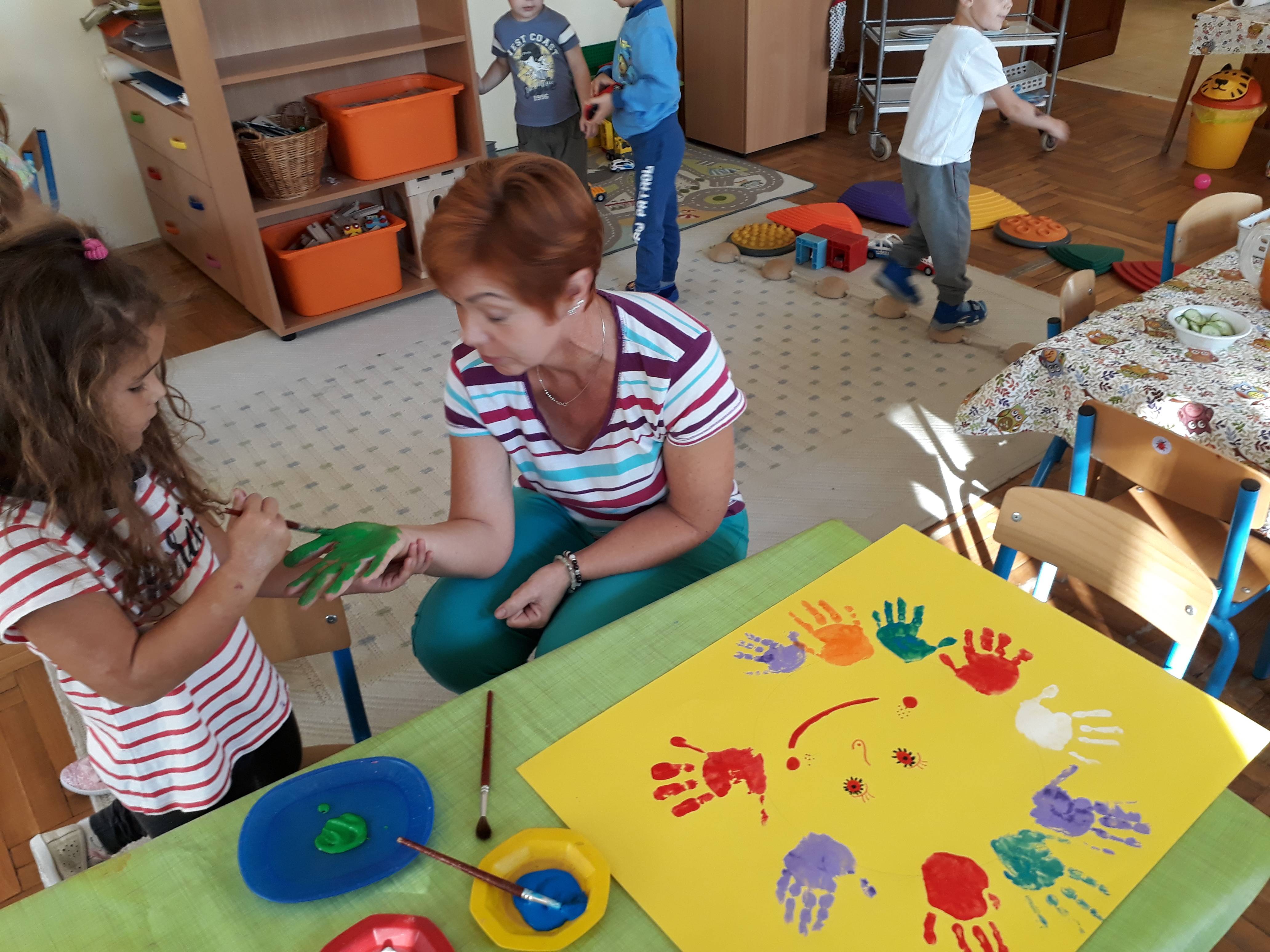 Ebben az évben már második éve dolgozunk a Boldogságóra Programmal, így nem volt ismeretlen a gyermekek számára a hála fogalma. A beszélgetőkörben többször beszélgettünk arról ki kinek miért lehet hálás. Jó volt nézni, ahogy igyekeznek egymást segíteni, sokkal figyelmesebbek, segítőkészebbek lettek egymással. Mivel ez az időszak a visszaszoktatás időszaka, olyan közös feladatot találtunk ki, amelyben mindenki saját fejlettségének megfelelően tudott részt venni. Közösen készítettünk egy „Hála napocskát” a gyerekek tenyérlenyomatával, amibe beleírtuk, ki miért kinek hálás. Ez a hála napocska egész évben a csoportunkat fogja díszíteni emlékeztetve Bennünket a hála fontosságára.