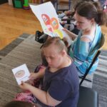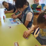 Ezt követően kivetítőn megtekintettük a boldogságórákon készült fotókat, megnézegettük az alkalmazott tárgyképeket, és hozzá felelevenítettük a gesztusjeleket. Az órákon közösen készített képeket, tárgyakat is sorra és kézbe vettük.