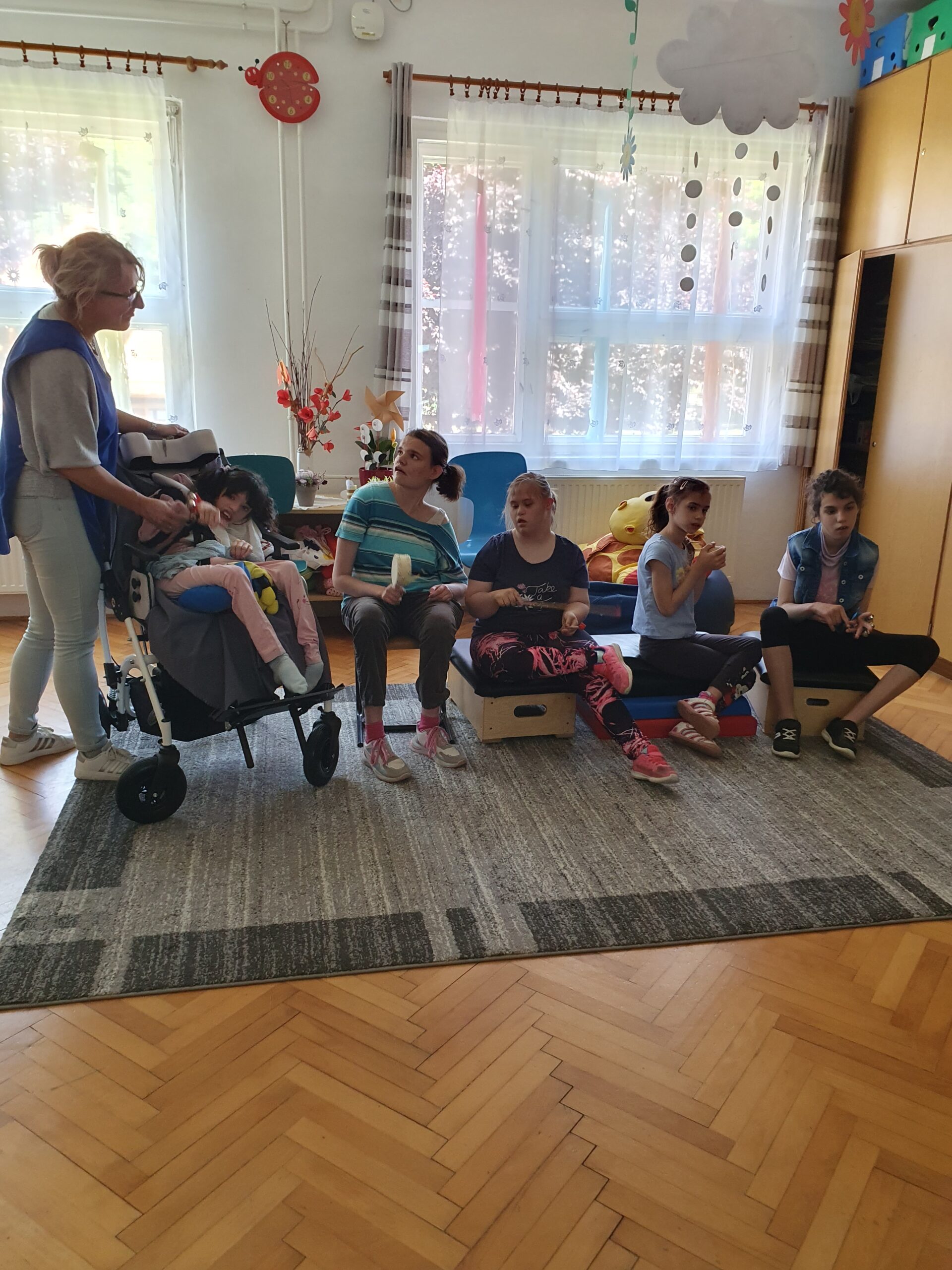 Tanulóink életében fontos az állandóság, ami biztonságérzetet nyújt. Ezt az állandóságot a boldogságóráinkon a Napimádás relaxációs gyakorlat jelenti számukra, melyet dalhallgatás és ritmushangszerekkel történő kísérés követett (Bagdi Bella: Szép nap, ölelj most át).