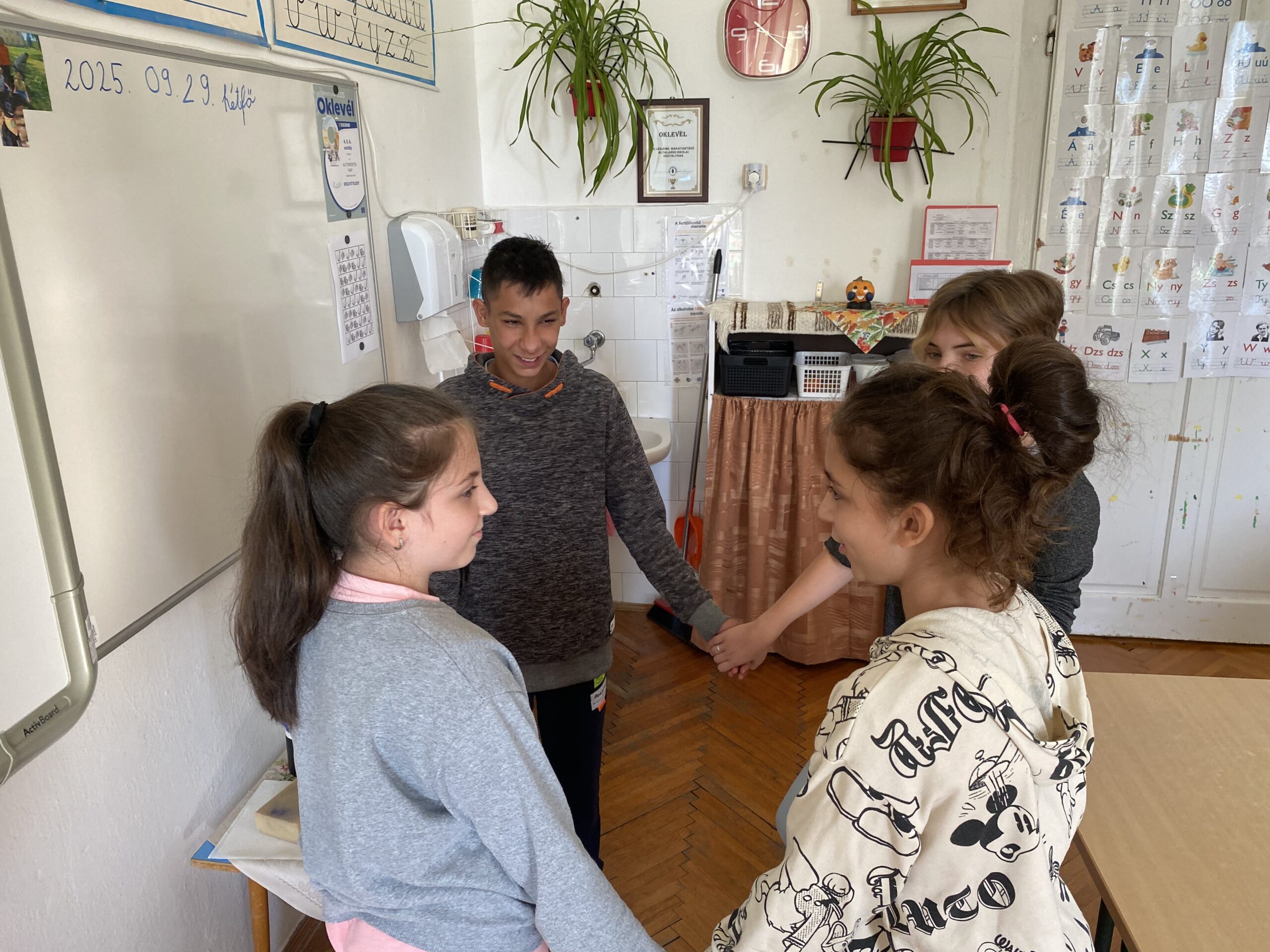 Az óra végén egy kört alkottunk, megfogtuk egymás kezét, és a mellettünk levőnek elmondtuk, hogy miért vagyunk neki hálásak, majd miután körbeértünk, véletlenszerűen új kört alkottunk. Ezt 3 alkalommal ismételtük meg, figyeltünk rá, hogy ne kerüljünk olyan mellé, akinek már elmondtuk a hálánkat.