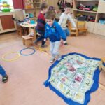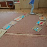 Február hónap témája a megküzdési stratégiák volt. A Maci nagycsoportban a gyerekekkel az előző havi célokat elevenítettem fel, majd beszélgettem velük arról, hogy ezek eléréseként mikre kell figyelniük, milyen pozitív tulajdonságokat kell erősíteniük magukban, milyen módszereket alkalmazzanak: ha elakadnak hívjanak segítséget, fogjanak össze a barátokkal, legyenek kitartóak, elszántak, bátrak, optimisták…stb. A Szerencsepróbáló királyfi meséje előtt egy kis kosárból „elővarázsoltam” különböző tárgyakat, melyeket magunkkal vinnénk egy „sárkánylegyőző kaland” -hoz. Megbeszéltük, ezek miért szükségesek nekünk: étel, távcső, kötél és társai. ezután elmeséltem nekik a mesét, és közben kérdezgettem őket a királyfi kalandja során átélt érzelmeiről (kíváncsiság, meglepődés, megszeppenés, harag, öröm) – ezeket mind el is játszottuk. A mese segítségével a megküzdés folyamatát tudtam átadni a gyerekeknek. A csoportszobát eztán berendeztük akadálypályának, ahol a székeken átkelve mentünk végig az erdőn, a végén leugrottunk egy leterített kendő forrásba, majd hét karikába ugrálva győztük le egyenként a sárkány fejeit. A kalandunk nehézségét fokoztuk a csoport ötletei alapján, már a harmadik körnél összetolt asztalok alatt is kellett bújni, és a karikákba kívülről ugráltunk bele -mindegyikben még kétszer ugorva. Menet közben a csoport óvodapedagógusaival folyamatosan biztattuk az akadályokon éppen küzdő gyerekeket útjukon, és amikor kellett, fizikai segítséget is adtunk nekik. A foglalkozás zárásaként egy általam készített mozgáskottán haladtak végig egyenként a gyerekek. A mozgásos játék közben tapasztalatot szerezhettek a kitartás, bátorság, türelem, önbizalom érzéseiről. Második alkalommal egy társasjátékot próbáltam ki velük (ez A szerencspróbáló királyfi c. mesére készült), amivel egyszerre két játékos játszhatott: cél a sárkányvár elérése és a sárkány legyőzése volt, dobókocka határozta meg a lépéseket, az erdőben kétfelé lehetett menni, a forrásnál ugrás könnyítette a pályát, és a sárkány fejeinél csak egyes vagy hatos dobásával juthattak tovább a játékosok. A gyerekek lelkesen küzdöttek végig a játék során.