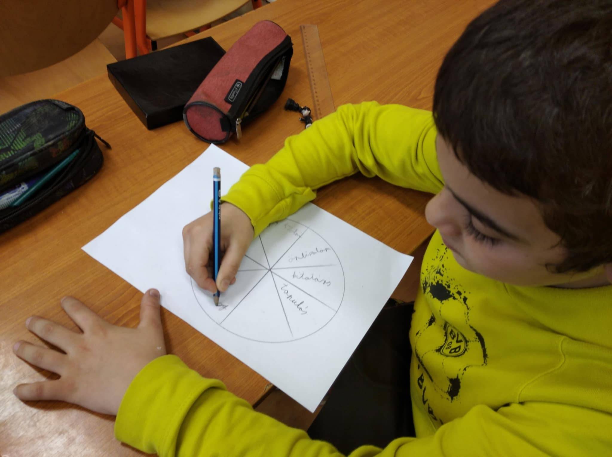 Januári boldogságóránk témája a Célok kitűzése és elérése volt. Az órát beszélgetéssel kezdtük. A gyerekek elmesélhették rövid és hosszú távú céljaikat. Majd egy feladatlapot töltöttek ki, melynek címe Én és az Új év. Ezután papírra szerencsekereket rajzoltak, melyre ráírták rövid illetve hosszú távú céljaikat. A foglalkozás végén meghallgattuk a hónap dalát.