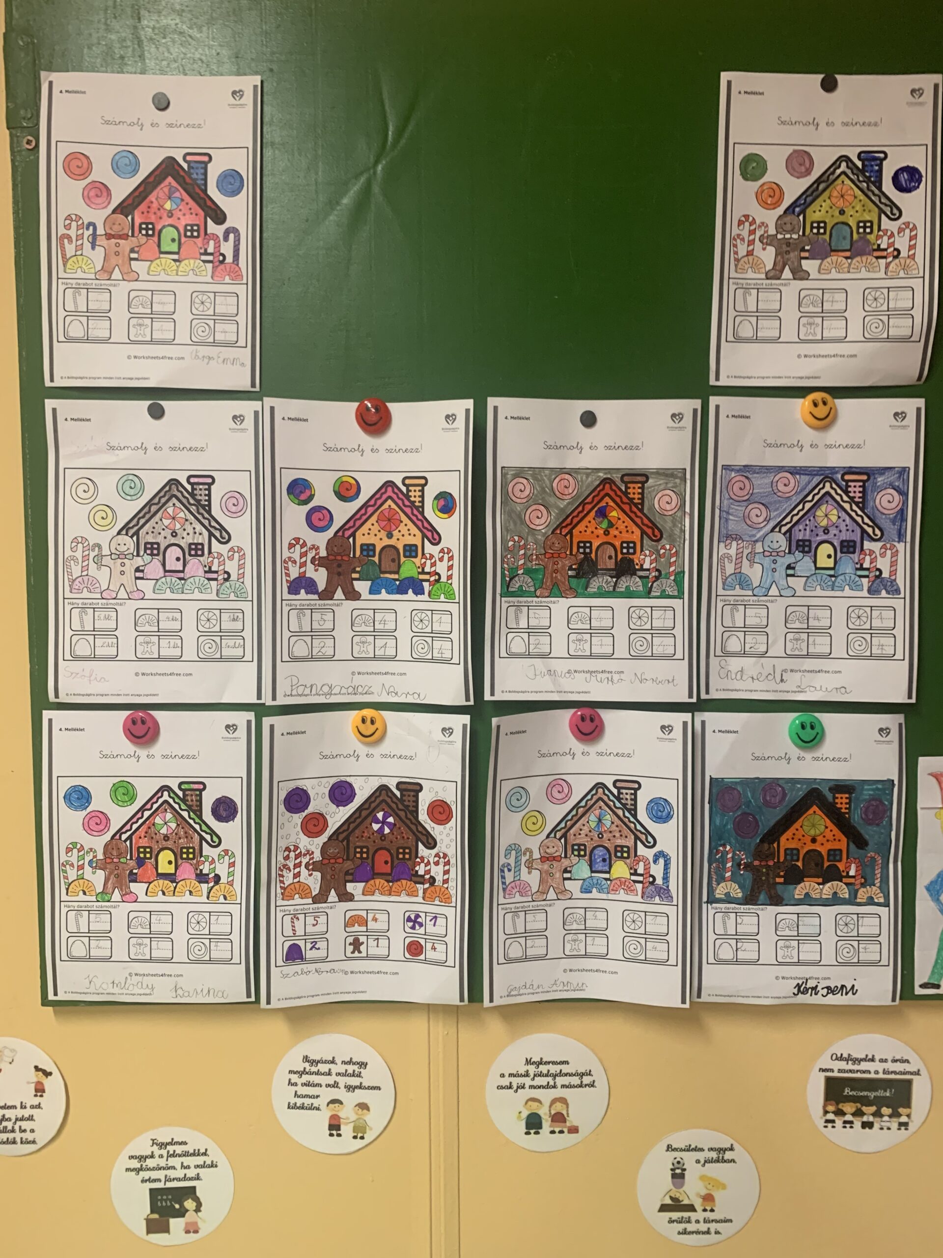 A boldógságóra keretén belül elkészítettük a Számolj és színezz! feladatot, a munkákkal tovább díszítettük tantermünket.
